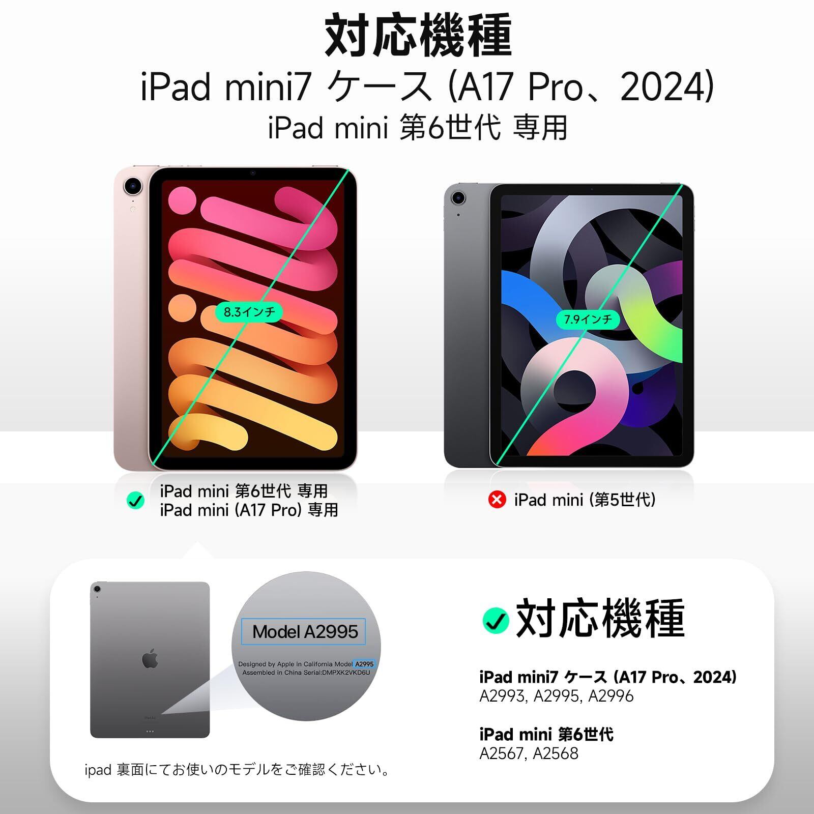 【対応機種】iPad mini 第7世代 (2024)および第6世代 (2021)専用のケースです。モデル番号:iPad mini 7(A2993, A2995, A2996)、iPad mini 6(A2567, A2568)。ご購入前にiPad本体のモデル番号を確認してください。