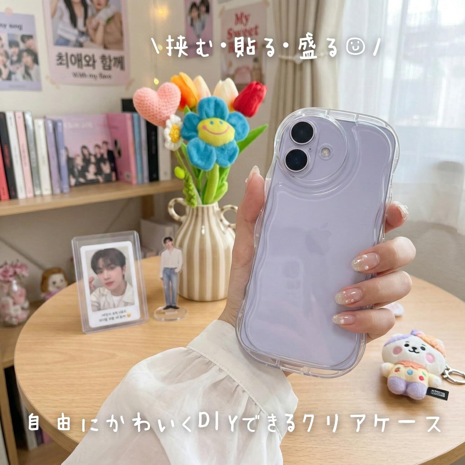 saymi's クリア ウェーブ おしゃれ 韓国 iPhone15 ケース アクスタ収納 推し活にぴったり 手にフィット 透明 可愛い シンプル (iPhone15)