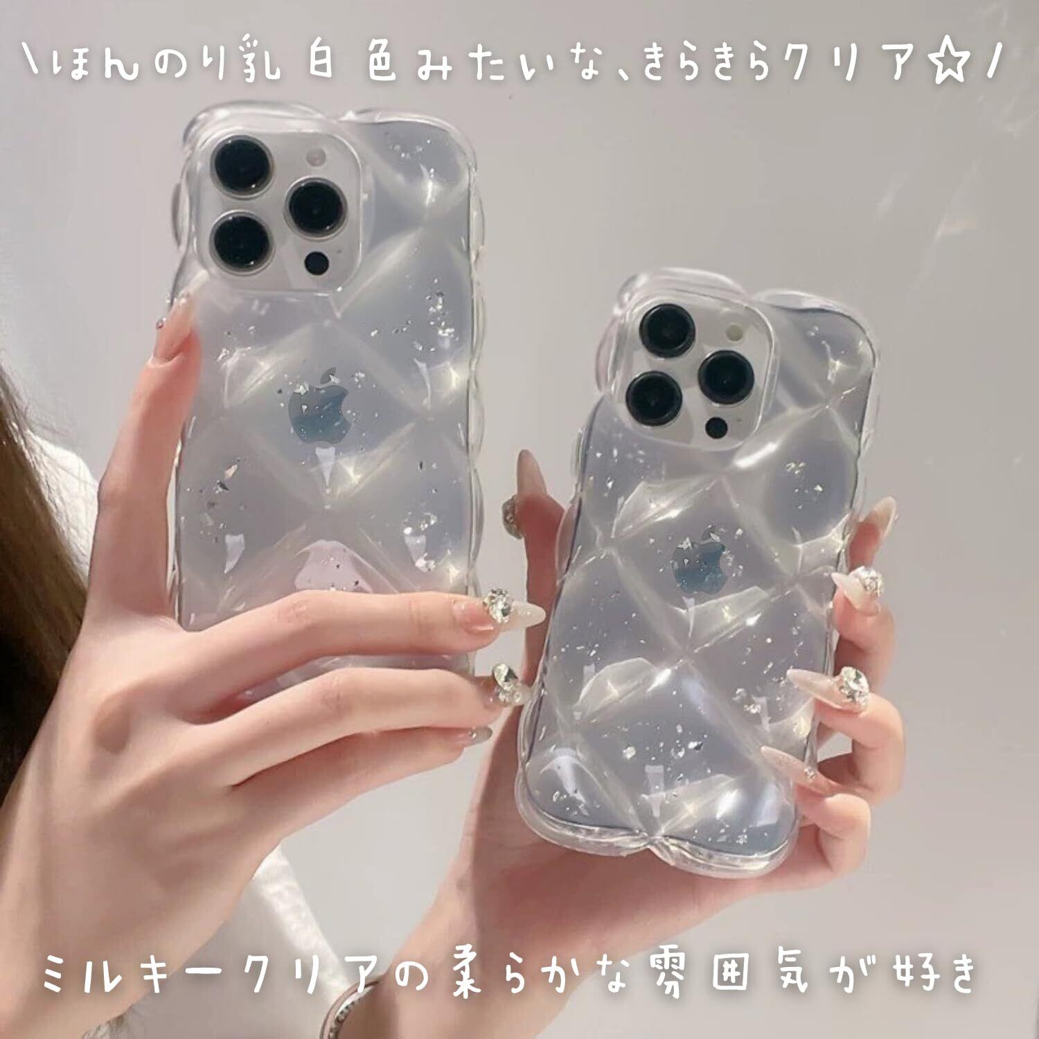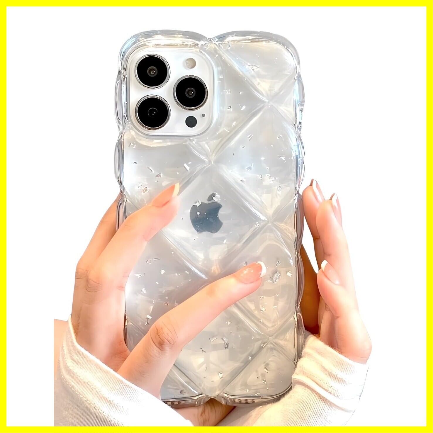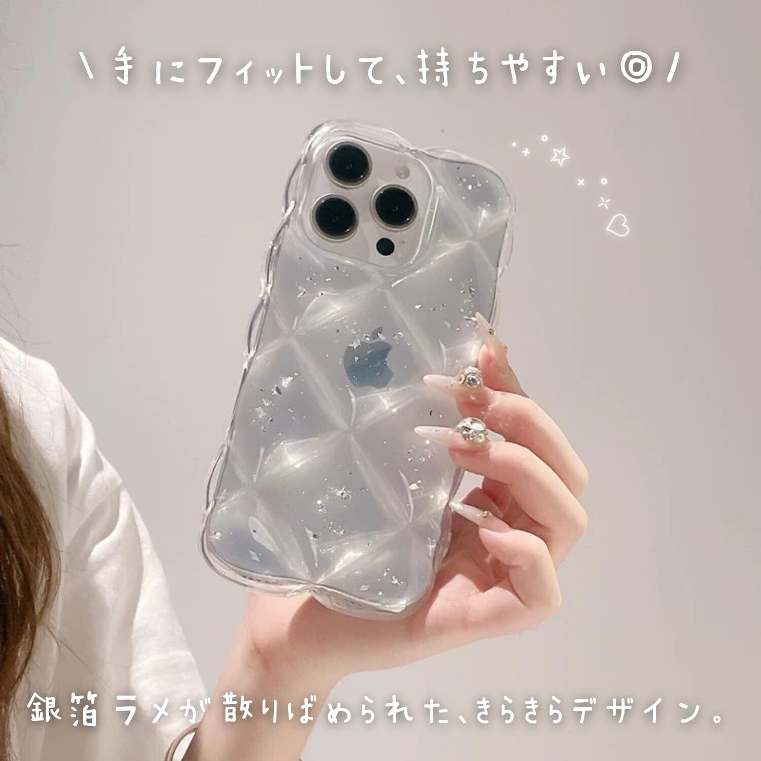 saymi's キルティング クリア おしゃれ 韓国 iPhone17用 ケース きらきら ぷっくり 衝撃吸収 クッションデザイン 立体 シルバー 持ちやすい 透明 可愛い 推し活 (iPhone17用)