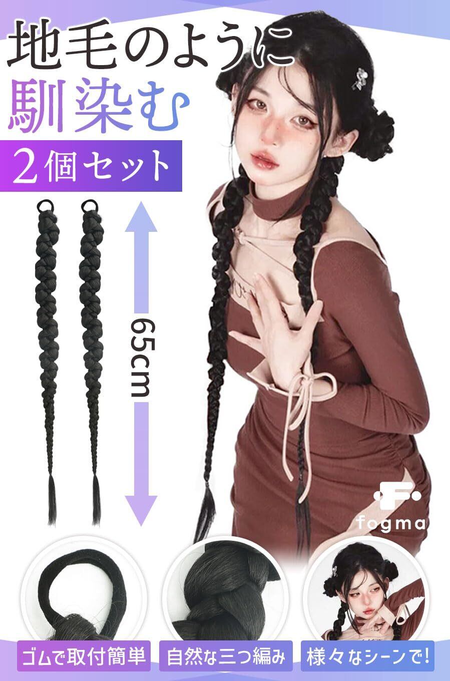 fogman エクステ ウィッグ 三つ編み かわいい 長め おしゃれ 自然 おさげ 2本セット
