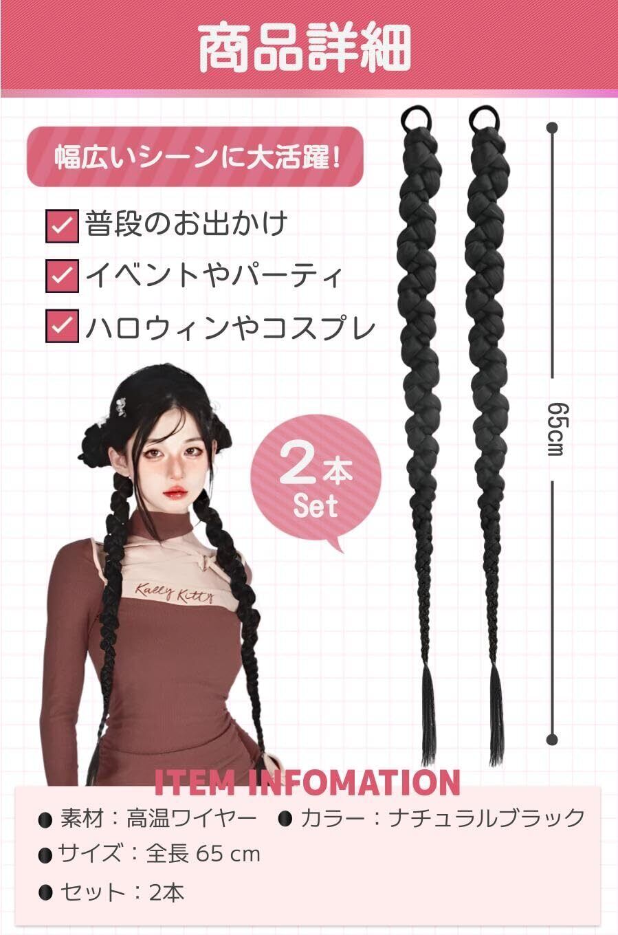 【商品特徴】①取り付け簡単で楽々!:ゴムを引っかけるだけなので気軽に使える/②自然な三つ編み:地毛を編んでいるような自然な質感!/③幅広いシーンに活躍:お出かけからパーティまで様々な用途に!/④お得な2本セット:いつでもおさげスタイルが楽しめる