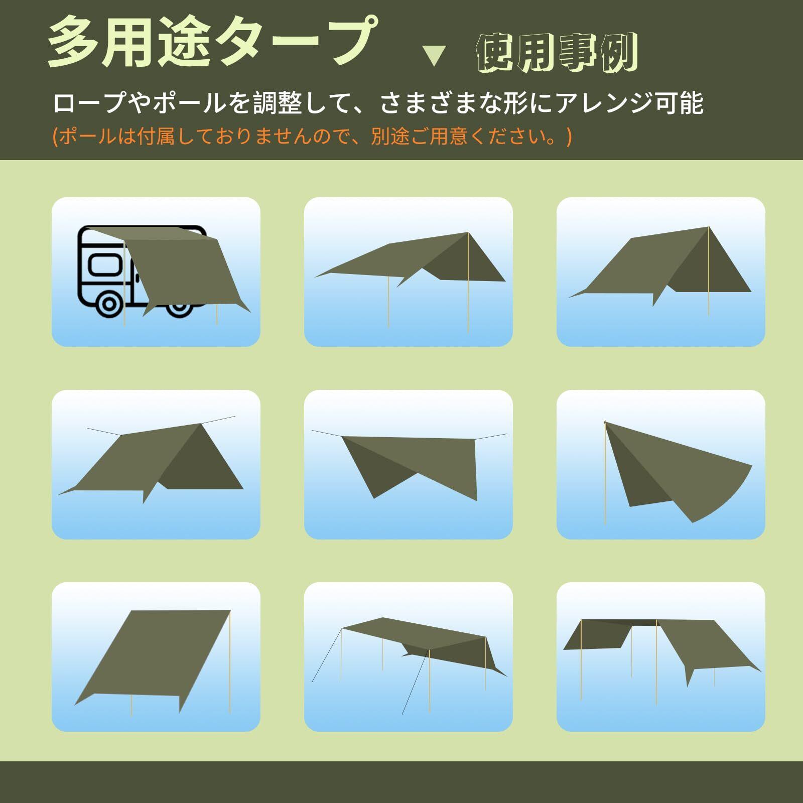 【優れた耐久性&耐引裂性】厚みのある210Tポリエステルを採用して、強い耐引裂性を持ちます。摩耗や破れを防ぐことができます。通常のタープより厚手、耐摩耗性と遮熱性UP。タープの縁が破れないように、縁を二重に補強したステッチを施しています。