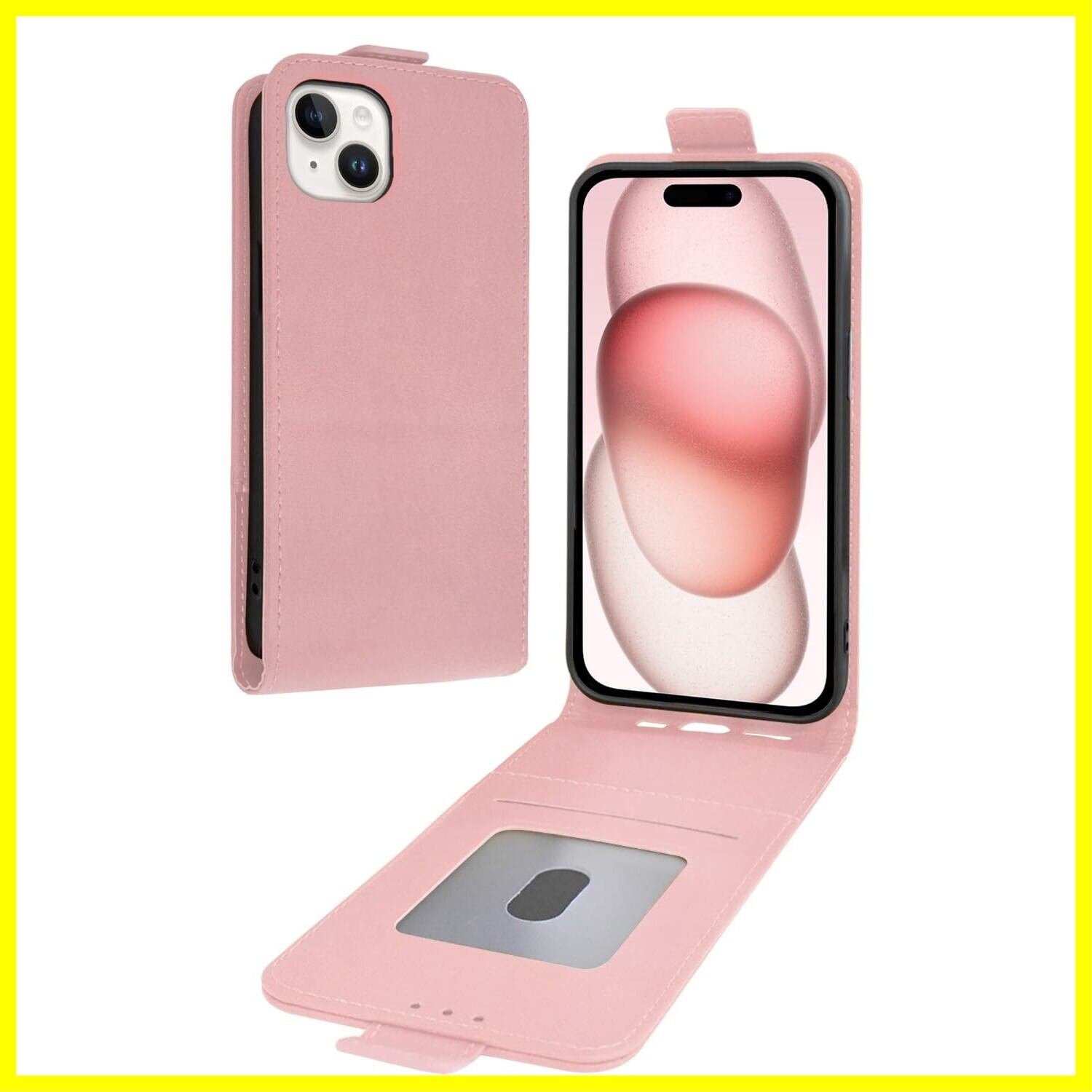 シズカウィルRe iPhone 15 ケース 手帳型 縦開きスマホケース 縦型 カバー 本革調 レザーケース 1個入り ピンクゴールド