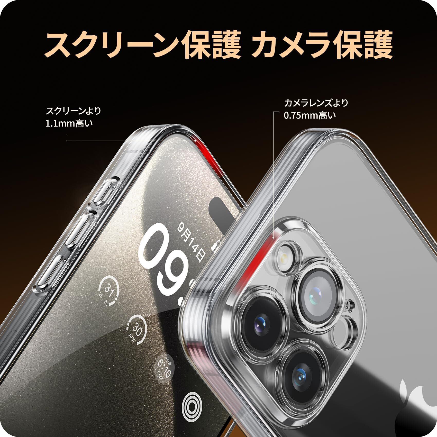 【スクリーン&カメラ保護】カバーの縁はスマホの画面より1.1mm高く、カメラレンズより0.75mm高い仕様です。iPhoneを平らな場所に置いたときにスクリーンやカメラがこすれて傷つくのを防ぎ、またカメラレンズをより守るため、レンズ間の隙間を満たしている仕様に変更いたしました!
