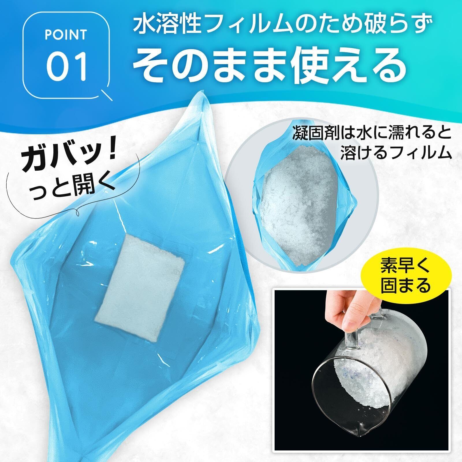 液体を素早く固める!水に濡れると溶けるフィルムを使用した凝固剤入り。