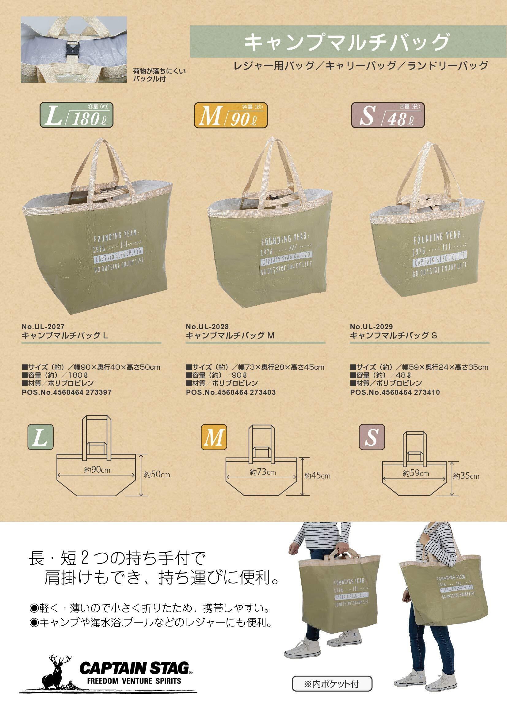 キャプテンスタッグ(CAPTAIN STAG) ランドリーバッグ トートバッグ キャリーバッグ キャンプマルチバッグ バックル・内ポケット付き UL-2027/UL-2028/UL-2029