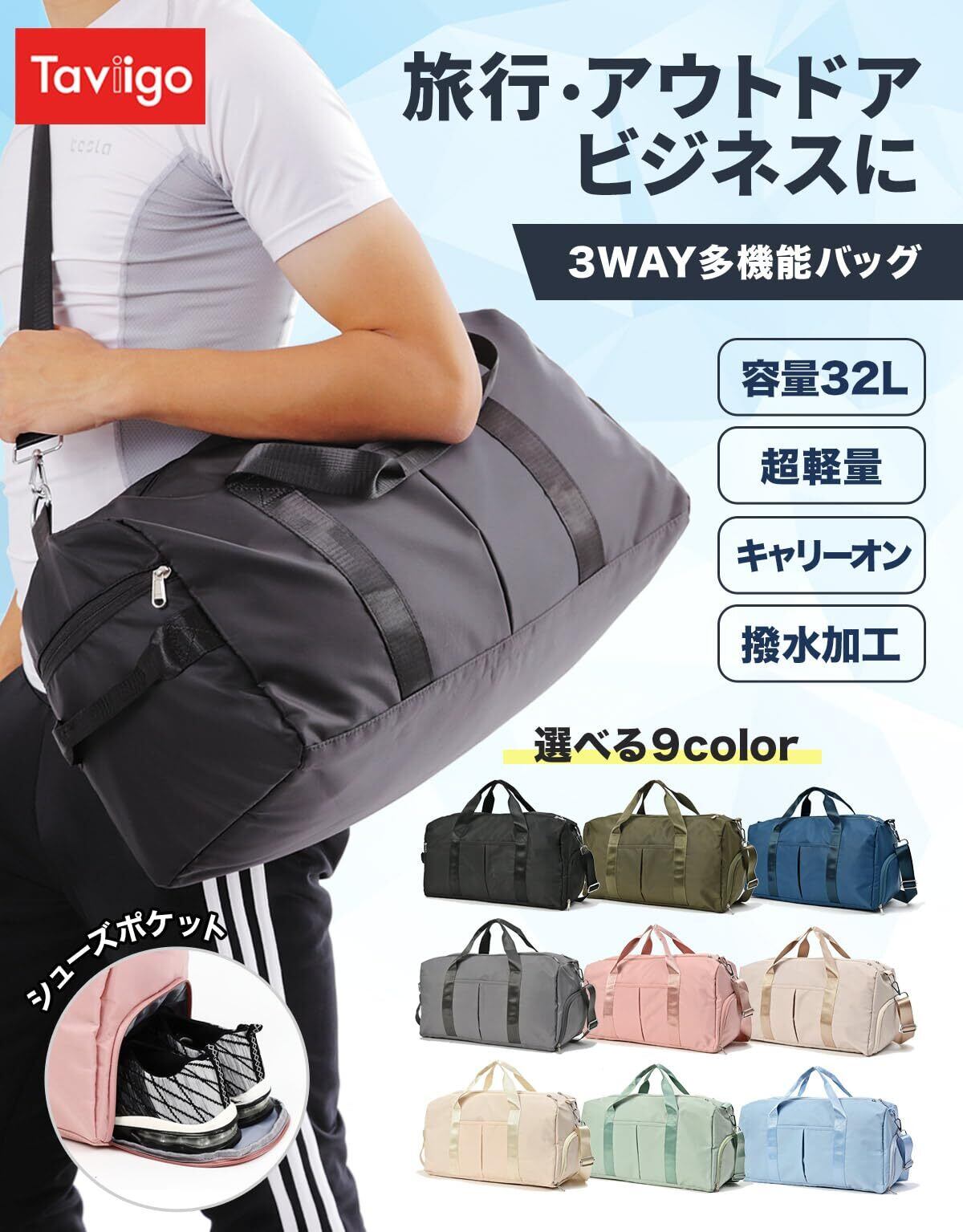 ボストンバッグ 修学旅行 旅行バッグ キャリーオンバッグ 軽量 32L 大容量 3WAY 防水 コンパクト 多機能 スポーツバッグ 1泊 2泊 (ブラック)