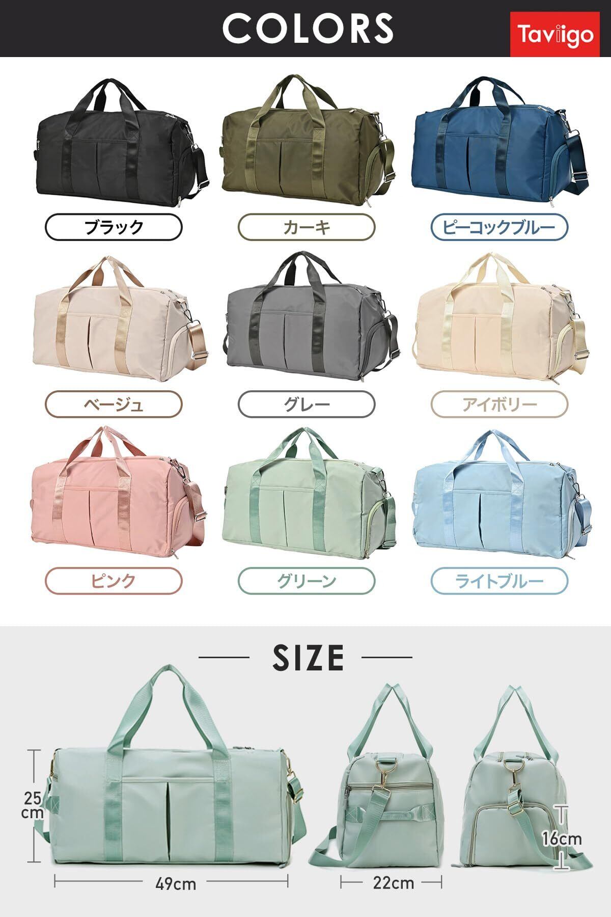 【商品詳細】サイズ:横49×高さ25×奥行き22cm、シューズポケット高さ16cm。素材:ポリエステル100%。カラー:多彩な選択肢。セット内容:バッグ本体、ショルダーベルト。