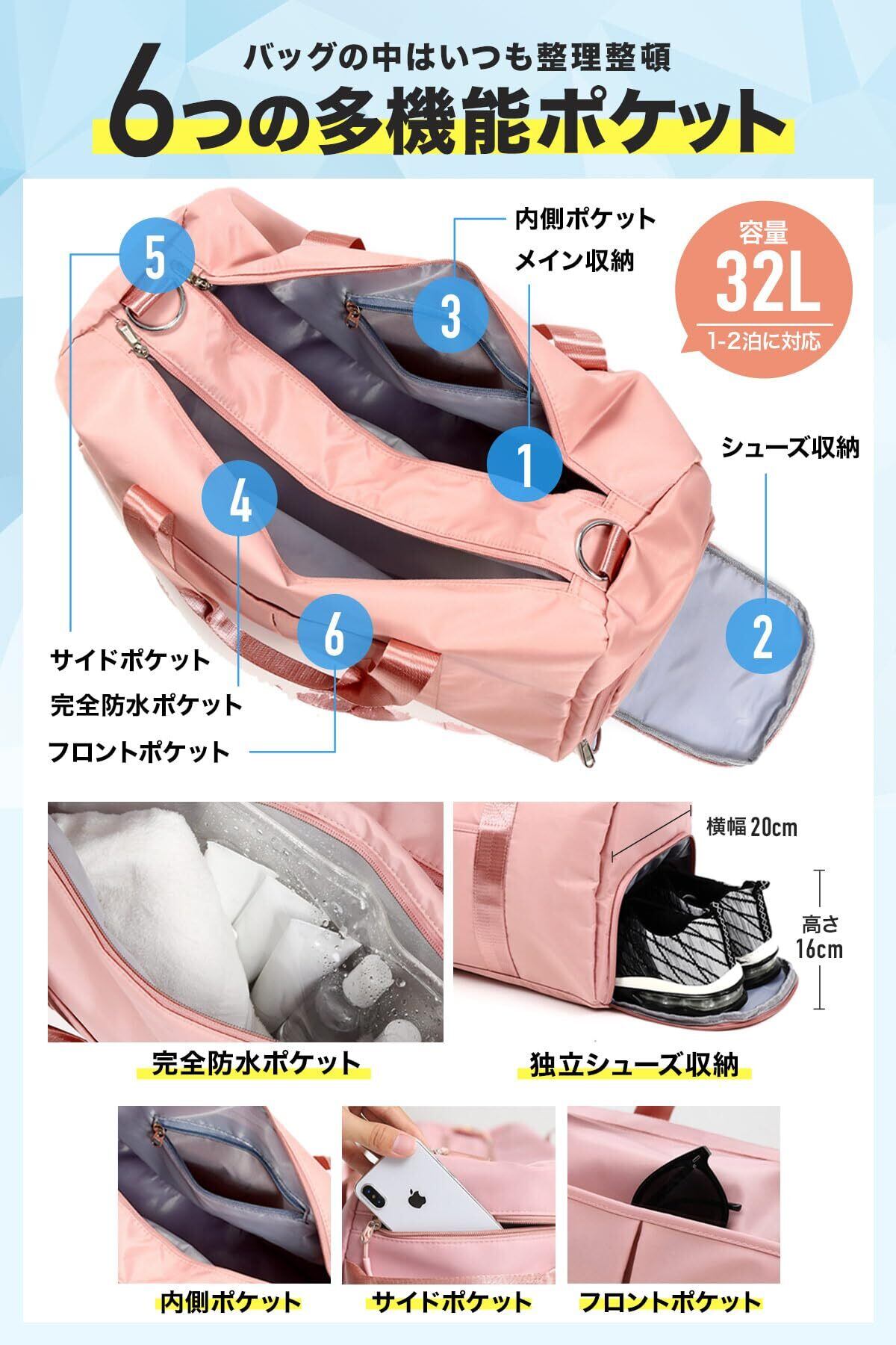 【整理整頓が簡単】6つの多機能ポケットが旅の荷物をスマートに整理。サイドポケットはスマホの収納に、内側のファスナーポケットは貴重品の保管に、そして完全防水ポケットは濡れた物の分離に最適です。メイン収納は32Lと広々、1〜2泊の旅行にぴったり。シューズポケットとフロントポケットもあなたの荷物を整理しやすくします。