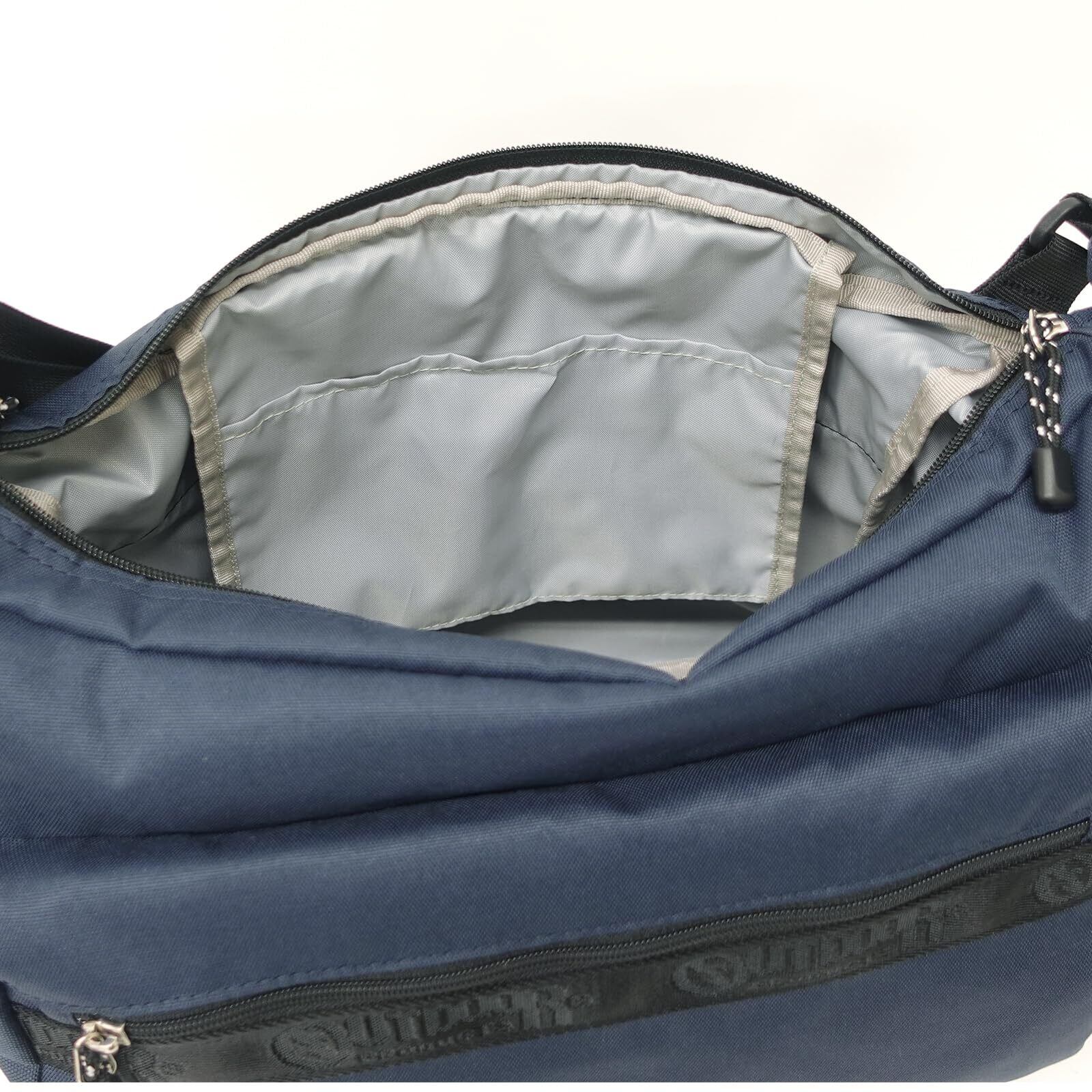 マチ幅16cmの大容量のメインルームに加え、フロントにはB5サイズもすっぽり収まる大型のジッパーポケットを設けています。