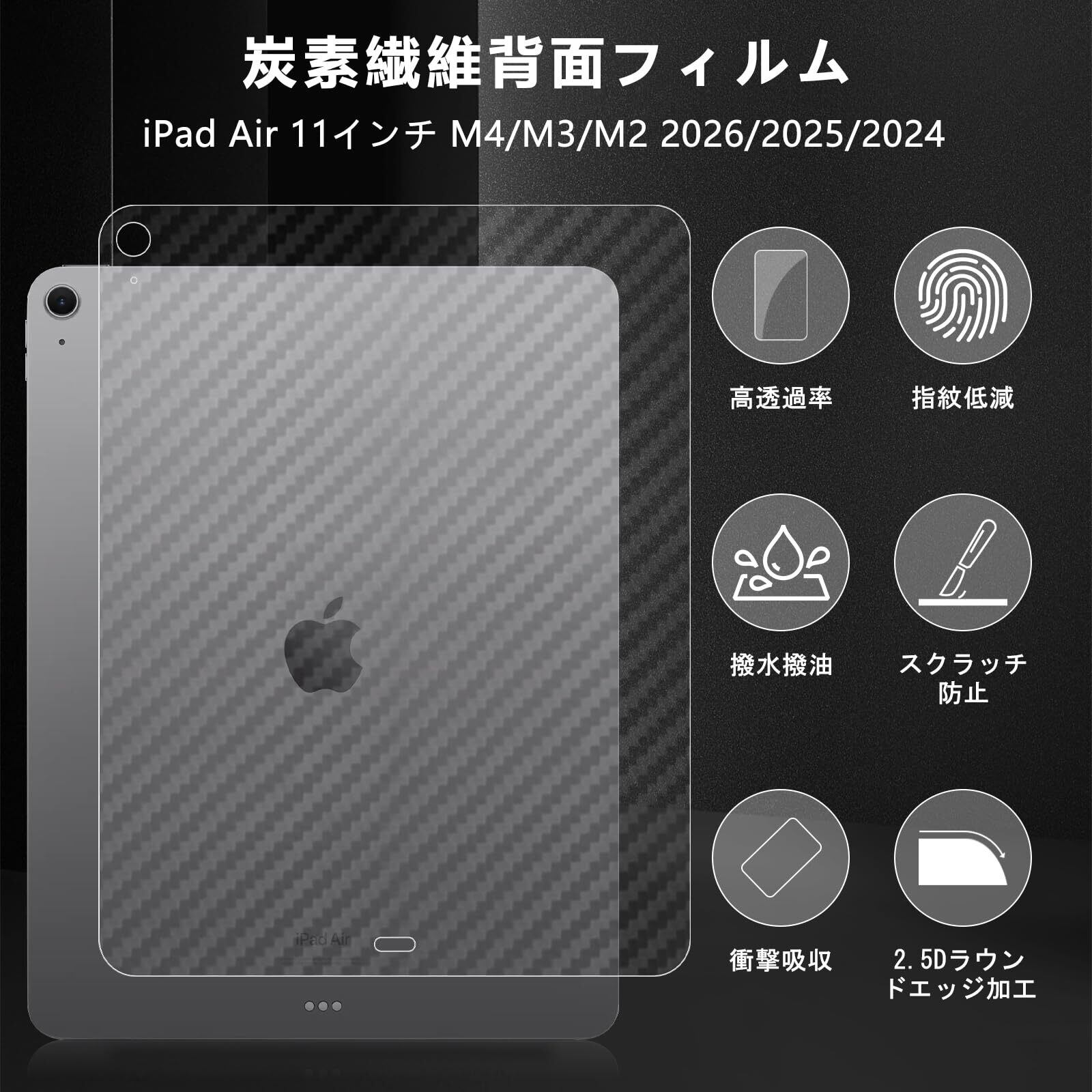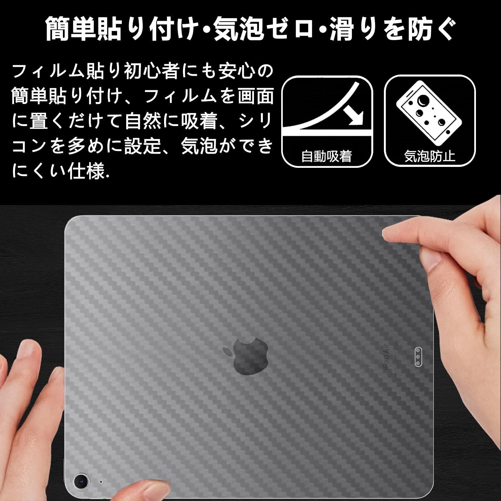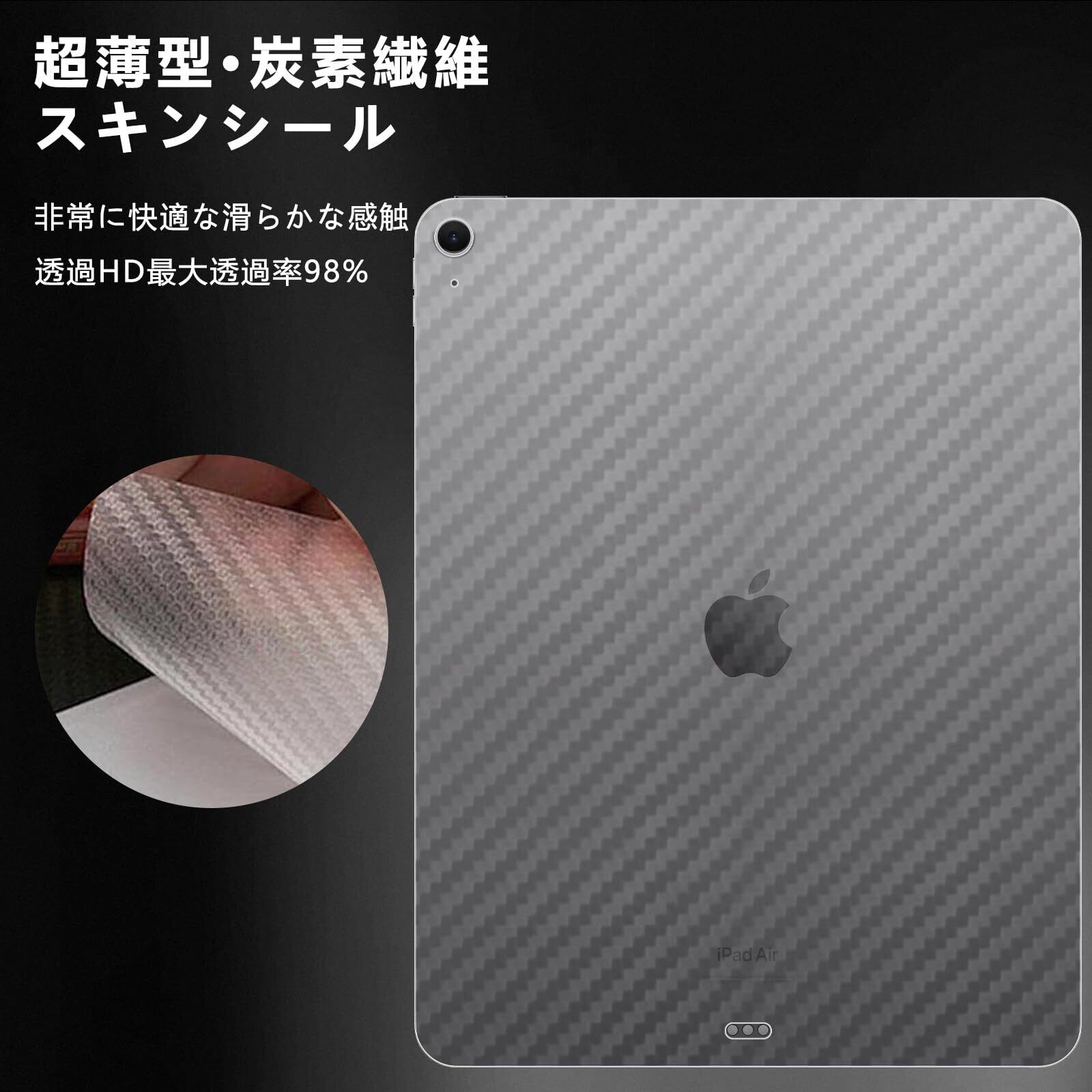 スキンシール iPad Air 11インチ M4/M3/M2 2026/2025/2024 用 背面フィルム 【2枚セット】モデル: A3091 A3092 A3266 A3267 A2902 A2903 炭素繊維素材 透明・マット保護シール 指紋防止 撥水撥油 気泡ゼロ 背面 フィルム ケース カバー 簡単取り付け アイパッドエアM4 / アイパッドエア7/6 対応