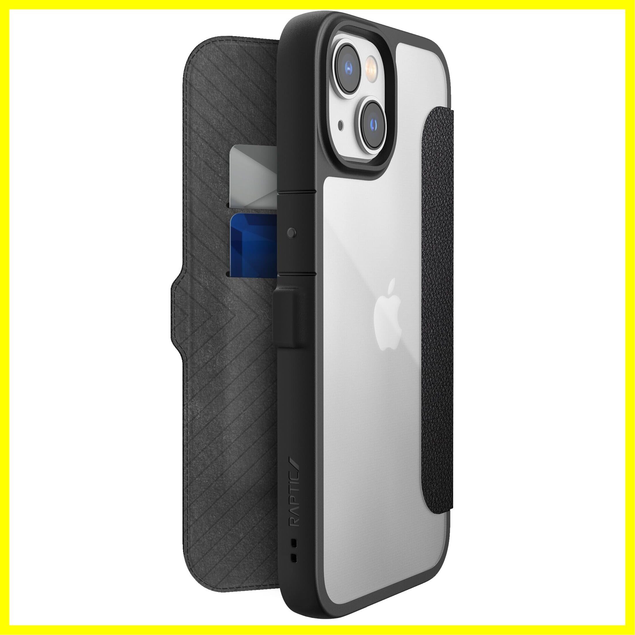 【RAPTIC】 iPhone15 対応 ケース 手帳型/カード 収納/耐衝撃 米軍 MIL 規格 クリア 合成皮 革 素材 背面 透明 マグネット 式 スマホケース [ Apple iPhone 15 携帯ケース ] Urban Folio ブラック