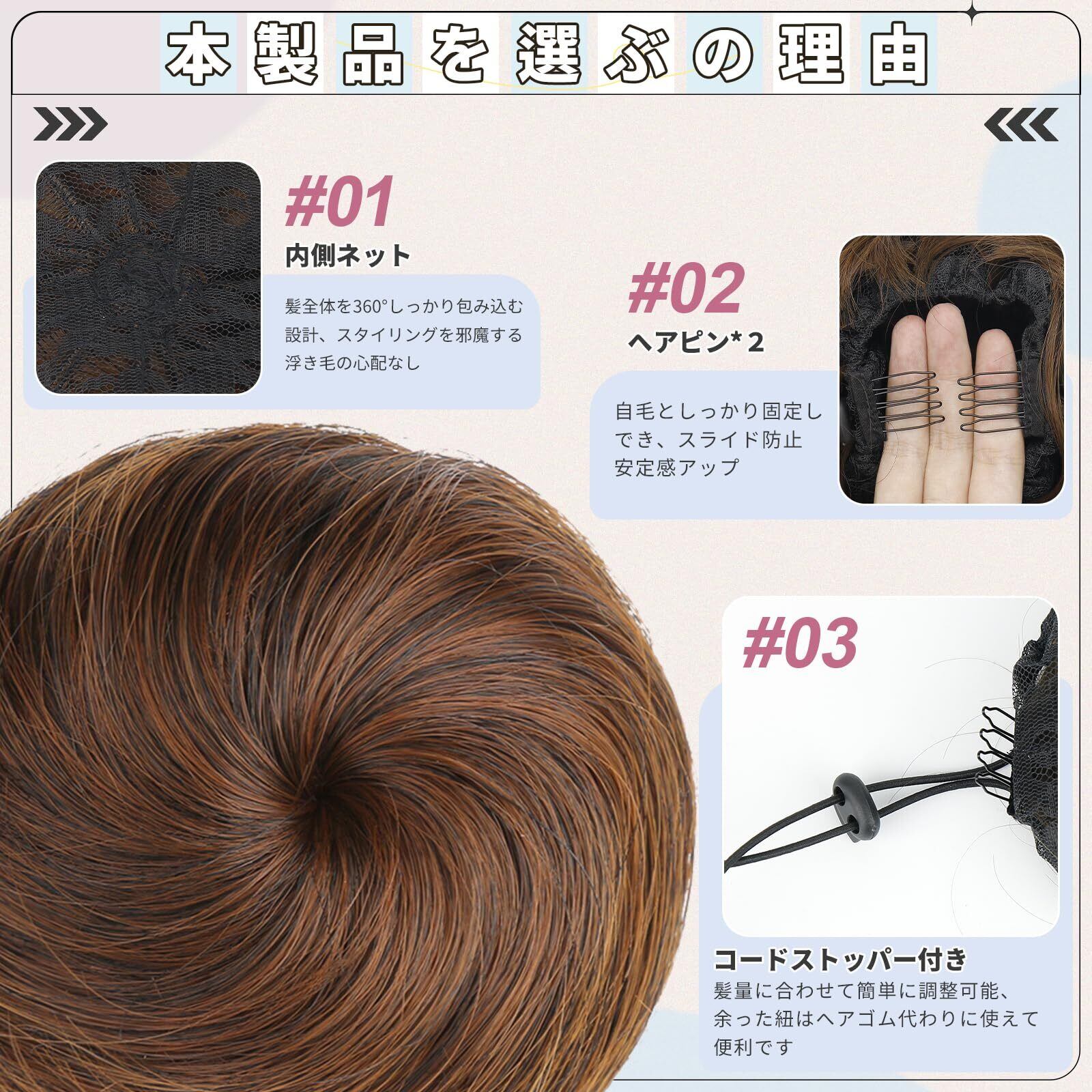 【専門デザイン】:高品質の高温糸を使用し、上品なお団子ヘアーに仕上げました。内側: 通気性よい内ネット、固定用ヘアピン、カンジ紐。なんといっても扱いやすさです。ウイッグ初心者さんでも大丈夫です。