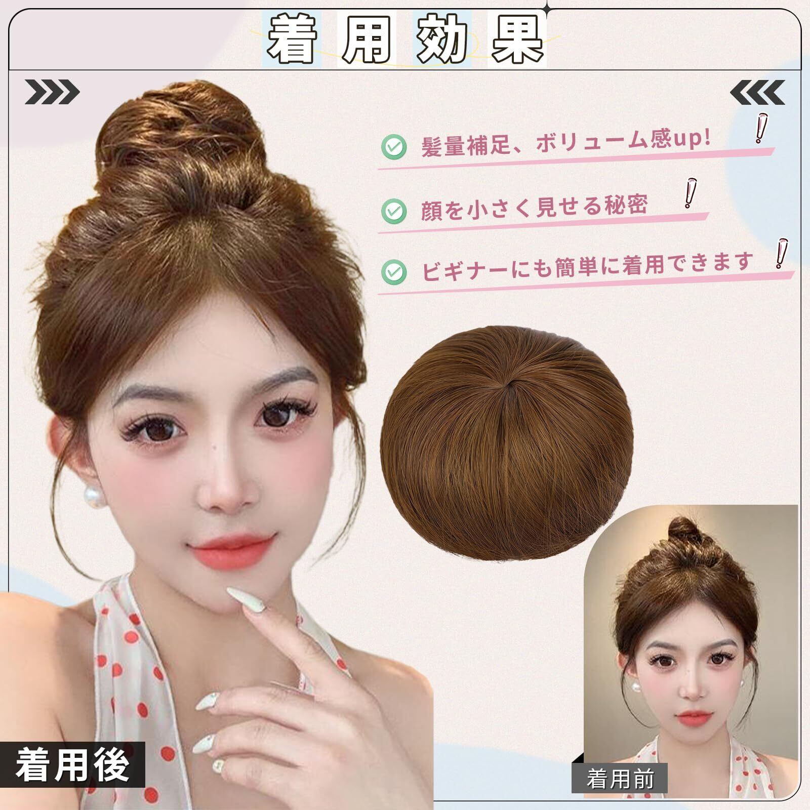 AISI HAIRお団子ウィッグ つけ毛 和装 まとめ髪 装着簡単 ポイントウィッグ レディース 着物 浴衣 日常OL 耐熱 ライトブラウン