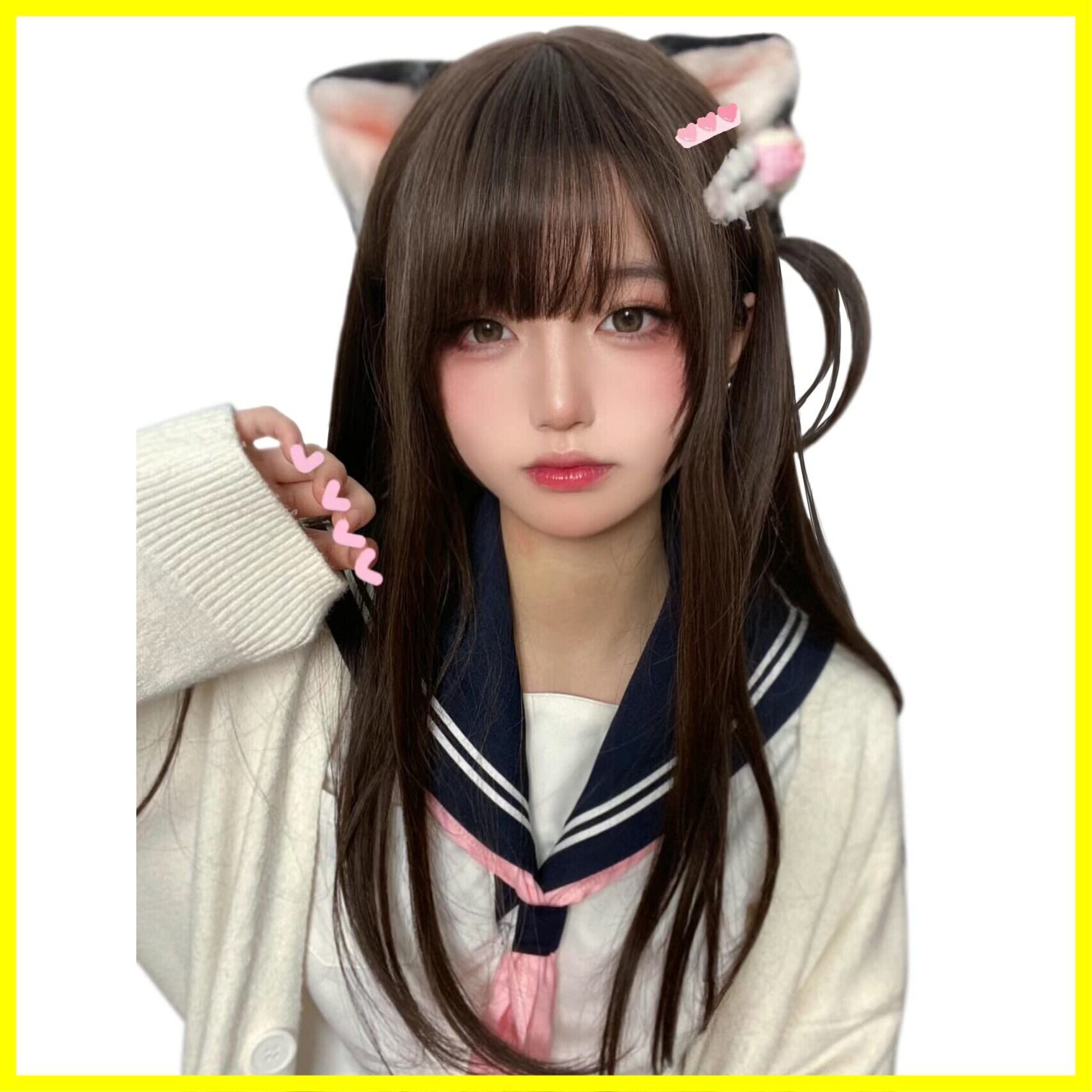 サイズ:①前髪:約15cm、②後髪:約57cm。カラー:ブラウン、亜麻色、黒茶色。セット内容:ウィッグ、ウィッグネット、櫛、取扱説明書。