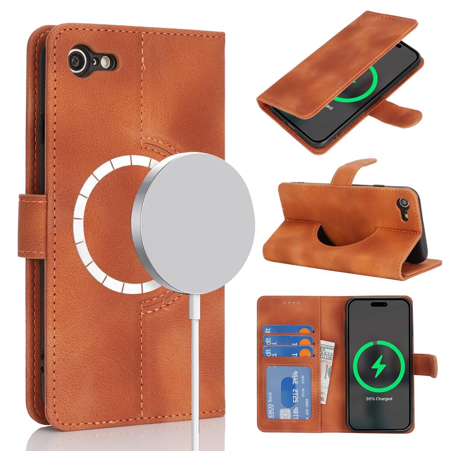 アイフォン for iPhone SE 2022 / SE 2020 ケース 手帳型 Magsafe 充電対応 2枚強化ガラスフィルムセット for iPhone 8 7 ケース 財布型 カバー Case Cover 携帯スマホカバー カード収納 - カーキ