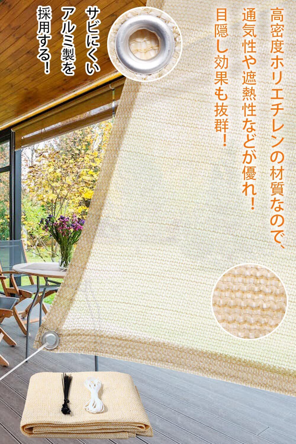 日除けシェード サンシェード 100×200cm 日よけ クールシェード 遮光 断熱 UVカット 風通しよい 目隠しシェード ベランダ 日よけスクリーン 高密度ポリエチレン 日焼け対策 取付簡単 オーニング バルコニー ガーデン 車庫 廊下 天井 屋外 様々な場所に適応 日本語説明書付属 固定用ヒモと結束バンド付き ベージュ