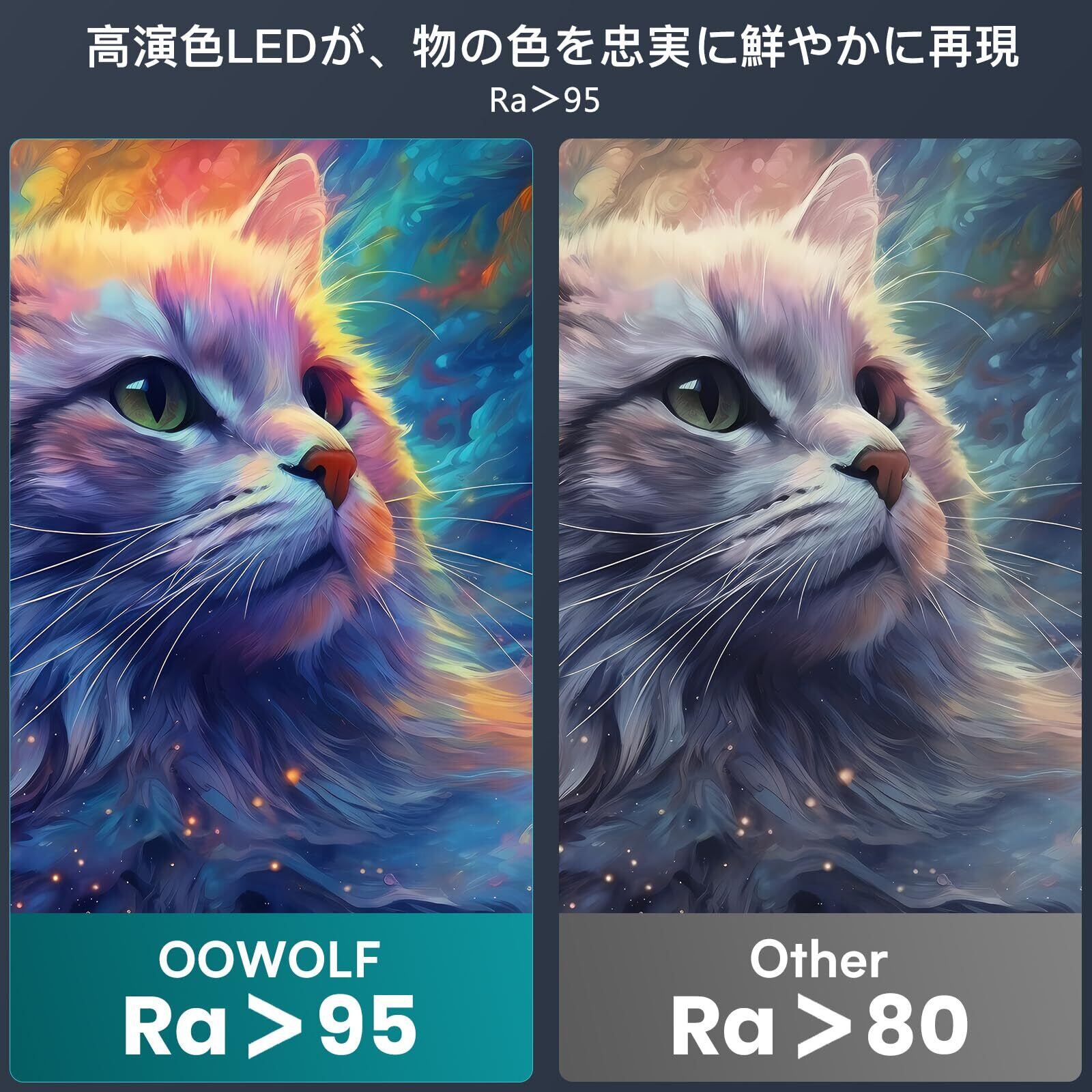 【目に優しい】高演色(Ra95)で色の再現性が高いので、細かな色の違いも分かりやすく、対象物が見えやすく、目が疲れにくい明かりです。