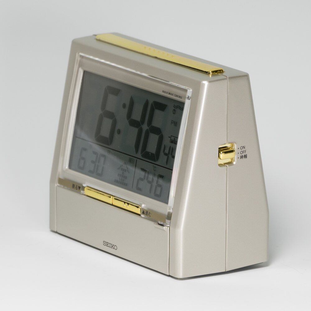 セイコークロック(Seiko Clock) セイコー クロック 目覚まし時計 TALK LINER トークライナー 音声時報 音声アラーム バイリンガル 切替 カレンダー 温度 湿度 表示 電波 デジタル 薄金色 パール DA206G SEIKO