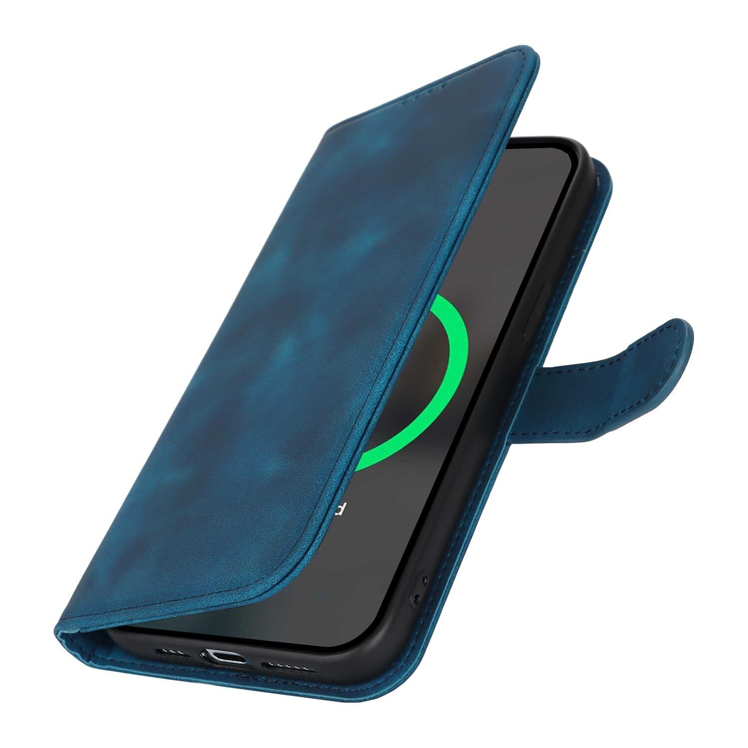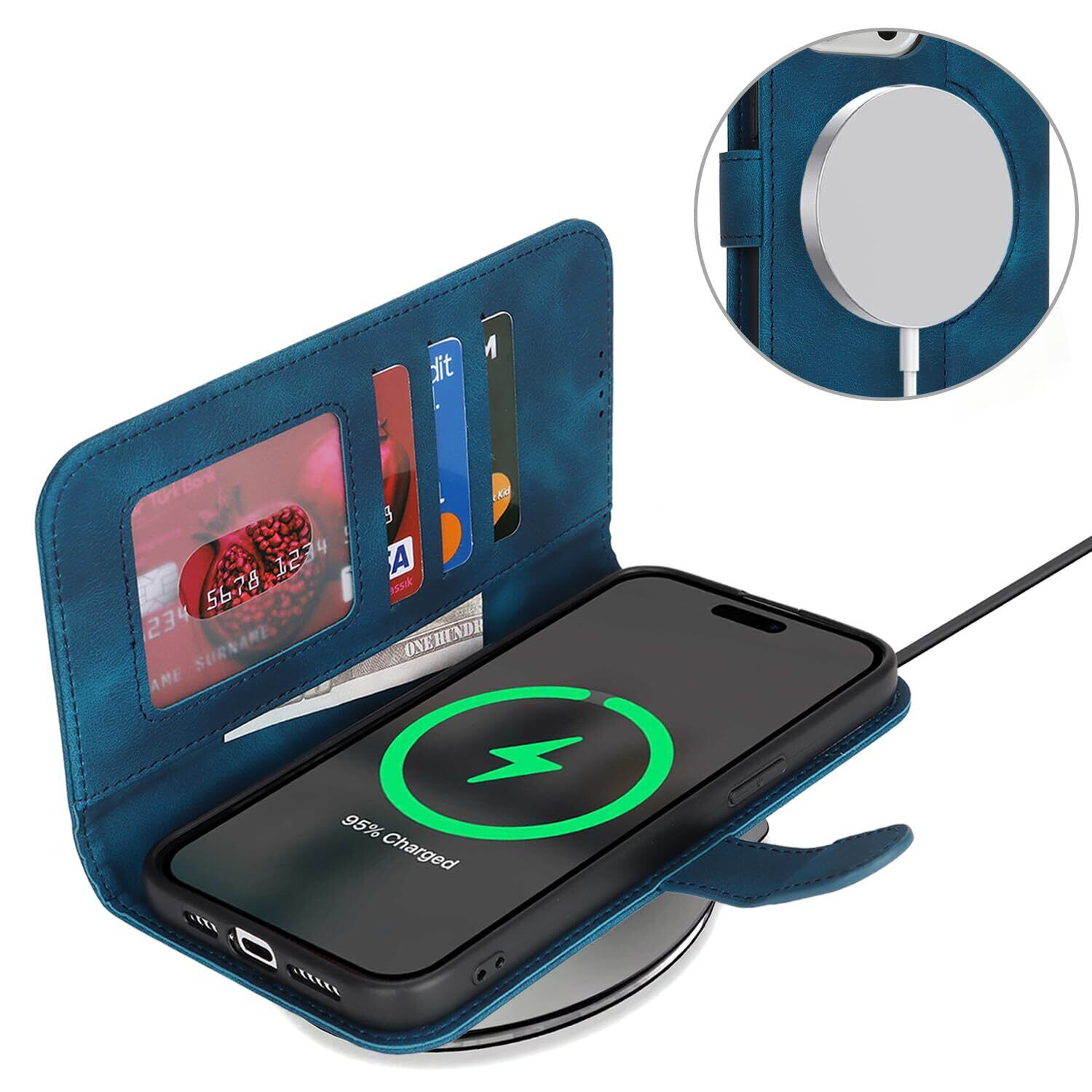 アイフォン for iPhone 15 ケース 手帳型 Magsafe 充電対応 2枚強化ガラスフィルムセット for iPhone15 ケース 財布型 カバー i15 Case Cover 携帯スマホカバー カード収納 耐衝撃 - ブルー