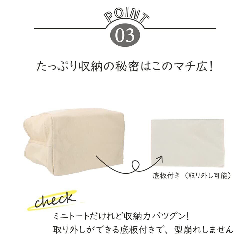 ヒント:外にはもう一つのポケットがあります。鍵、携帯などを置くことができます。ミニ トートバッグはお弁当箱やペットボトルがすっぽり入り、ランチバッグにピッタリ。