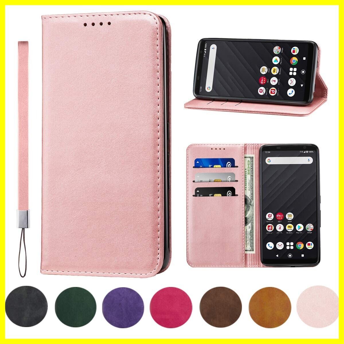 【カードポケット付き】:財布型ケースとして、名刺やお札などを入れるカードポケットがつき、ちょっとしたお出かけにもスマホケース一つでOK!日常生活に便利です。ただし、カードを入れ過ぎると、閉まらない場合がありますので、ご遠慮ください。