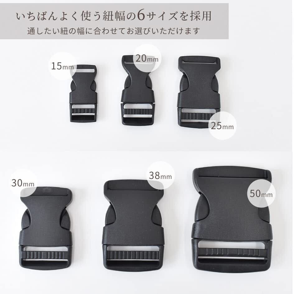 [手作り工房 MY mama] MYmama ワンタッチ バックル ブラック 差し込み サイド リリース バックル 長さ 調節 樹脂 パーツ (30mm/5個入)