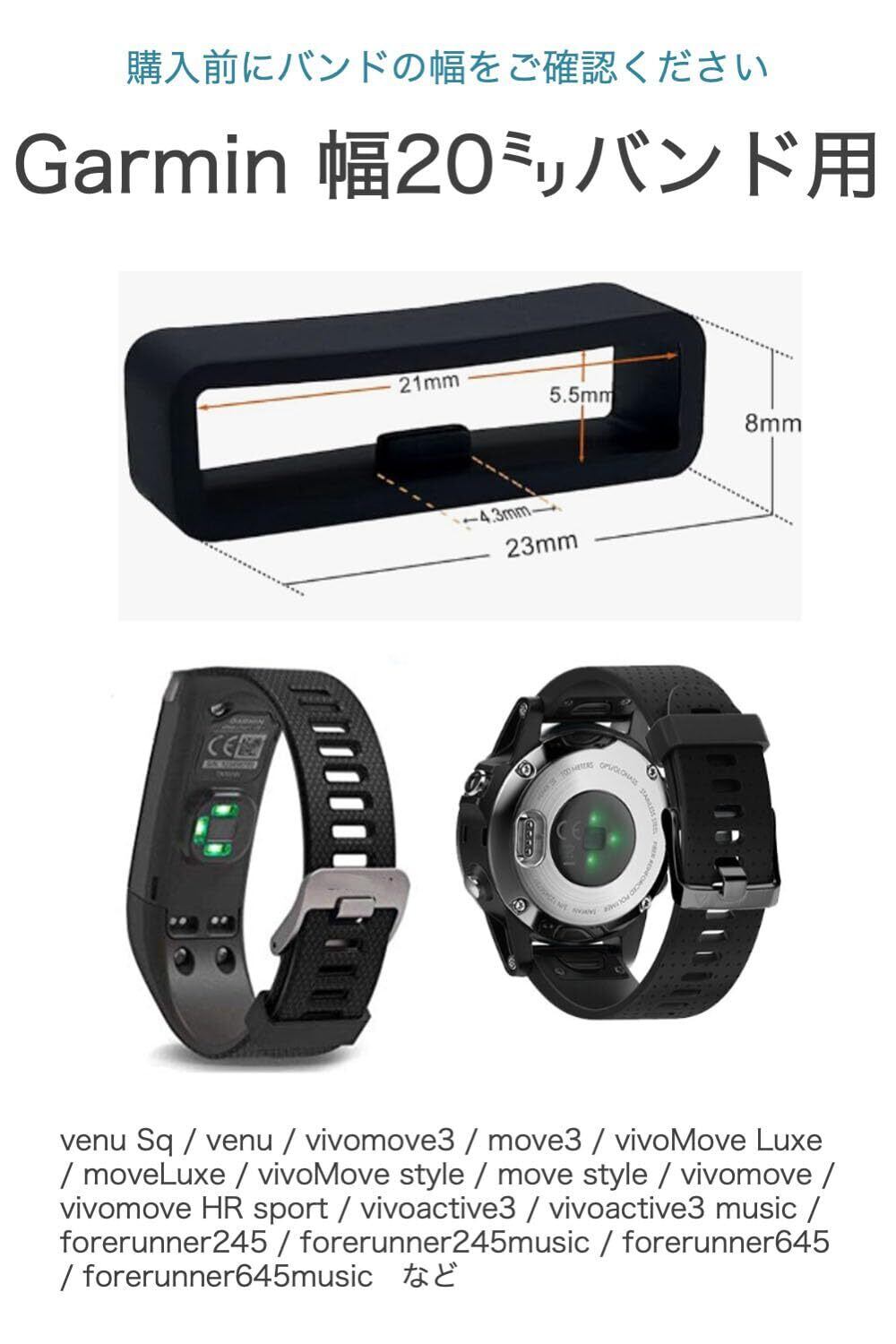 [wumio] Garmin バンドループ 内寸20mm 3個セット 遊環 シリコン 腕時計バンド ループ ガーミン リング 補修 交換 予備 venu sq vivoactive3 forerunner245 645