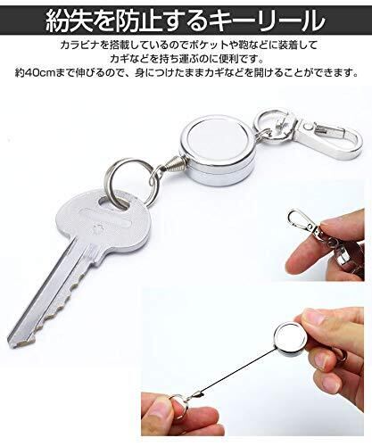 prendre キーリール リール カラビナ搭載 小型 軽量 キーホルダー キーリング 鍵 コード 釣り キャンプ アウトドア 伸びる 伸縮 PR-REEL01
