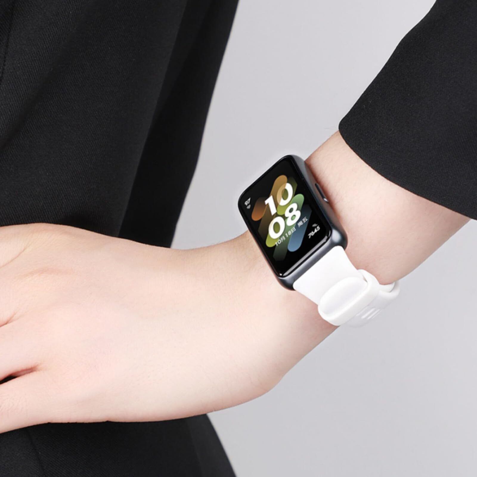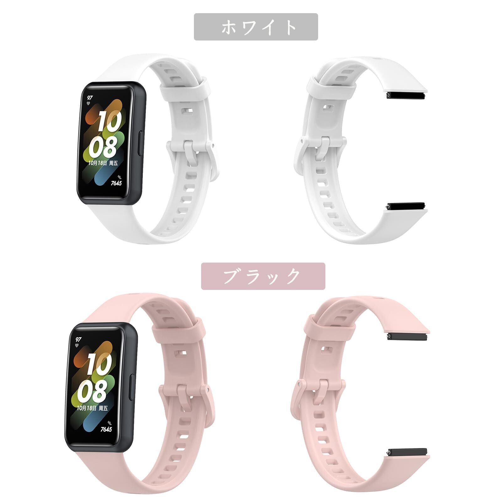 Huawei band7対応交換バンド 2本セット ファーウェイ バンド7替えバンド 柔らかい band7用ベルト シンプル 通気 調節可能 軽量(ピンク+ホワイト)