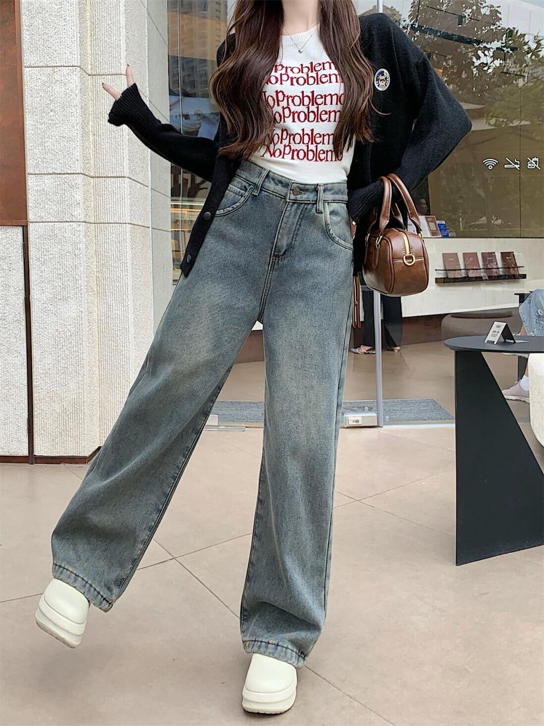 [JINJUDUO] 裏起毛デニムパンツ レディース ゆったり ジーンズ ズボン レディース ワイドデニム 大きいサイズ ハイウエスト 美脚 おしゃれ 春夏秋