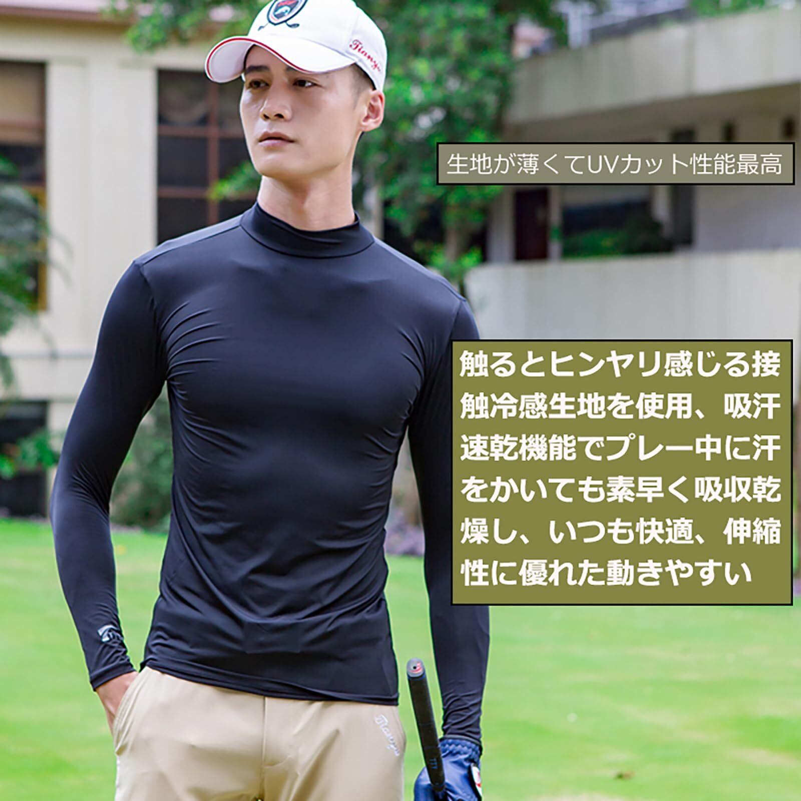 [wakae] ゴルフウェア インナー メンズ 長袖 UVカット ウェア 日焼け対策 ストレッチ ひんやり 夏 スポーツシャツ ゴルフウェア 吸汗 速乾 接触冷感 スポーツウェア
