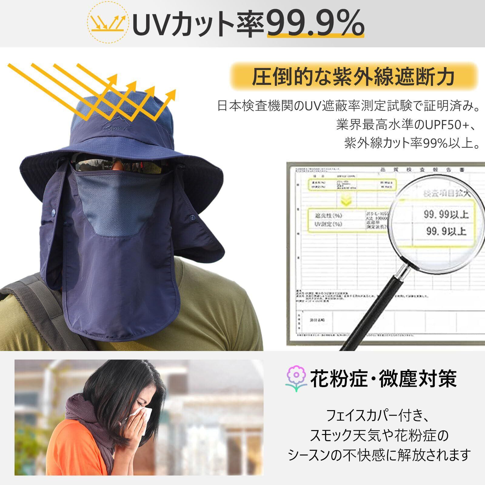 [Goture] フェイスカバー サファリハット 帽子付き 釣り フィッシングハット 顔カバー 登山 日除け帽子 メンズ 農作業用 撥水加工 UPF50+ UVカット 速乾 軽薄 メンズ レディース