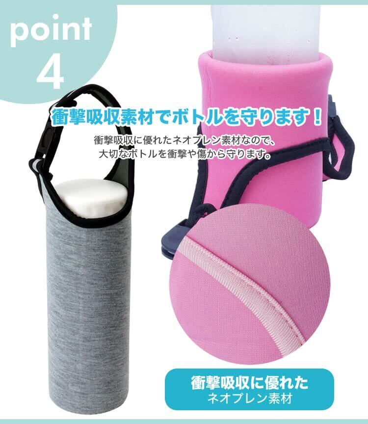 よく伸びる伸縮素材のため、550mlサイズの水筒や600mlの大容量のペットボトルも収納可能。