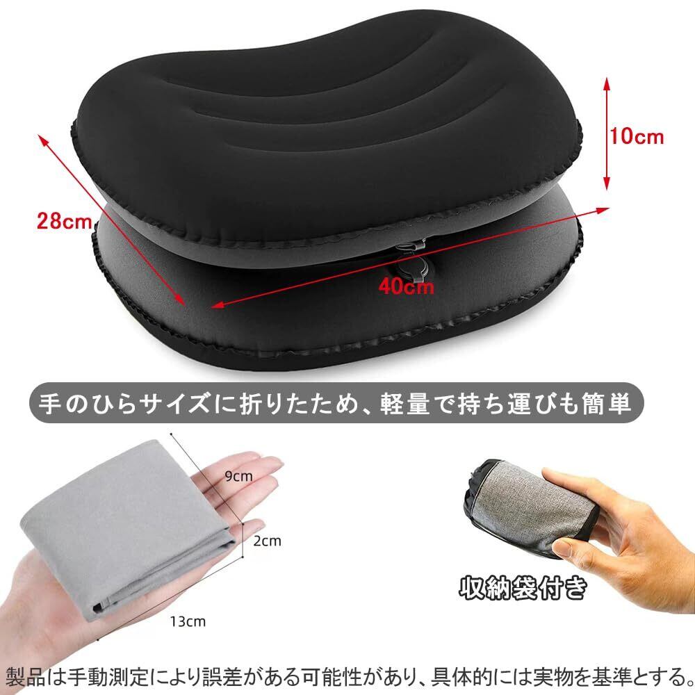 キャンプ 枕 超軽量 空気枕 旅行枕 携帯枕 折りたたみ 快適 軽量 エアーピロー 車中泊 キャンプ オフィス用 収納袋付き (ブラック)