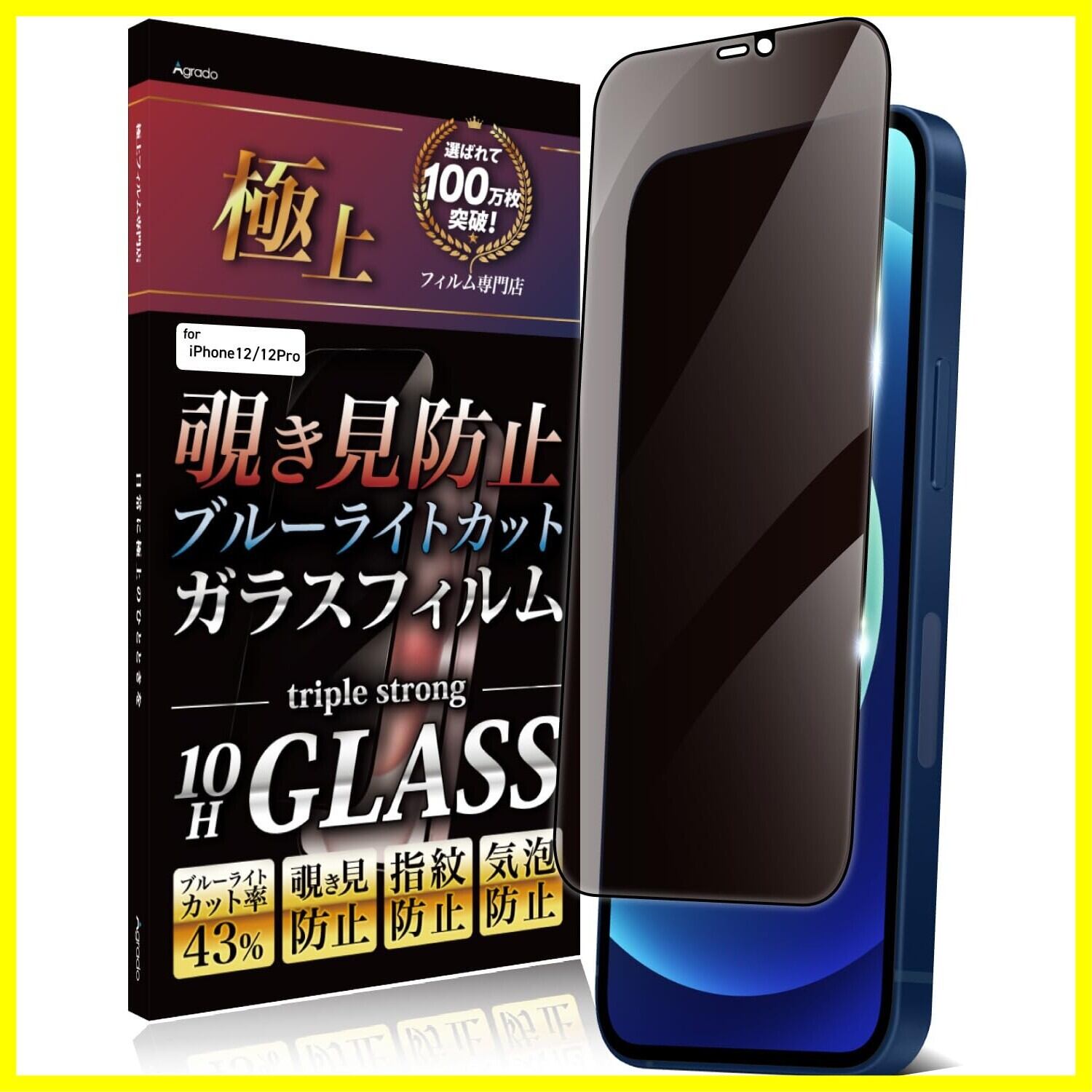 Agrado 覗き見防止 iPhone12 iPhone12Pro 用 ガラスフィルム 全面保護 いphone12 pro 10H 保護フィルム ブルーライトカット フィルム