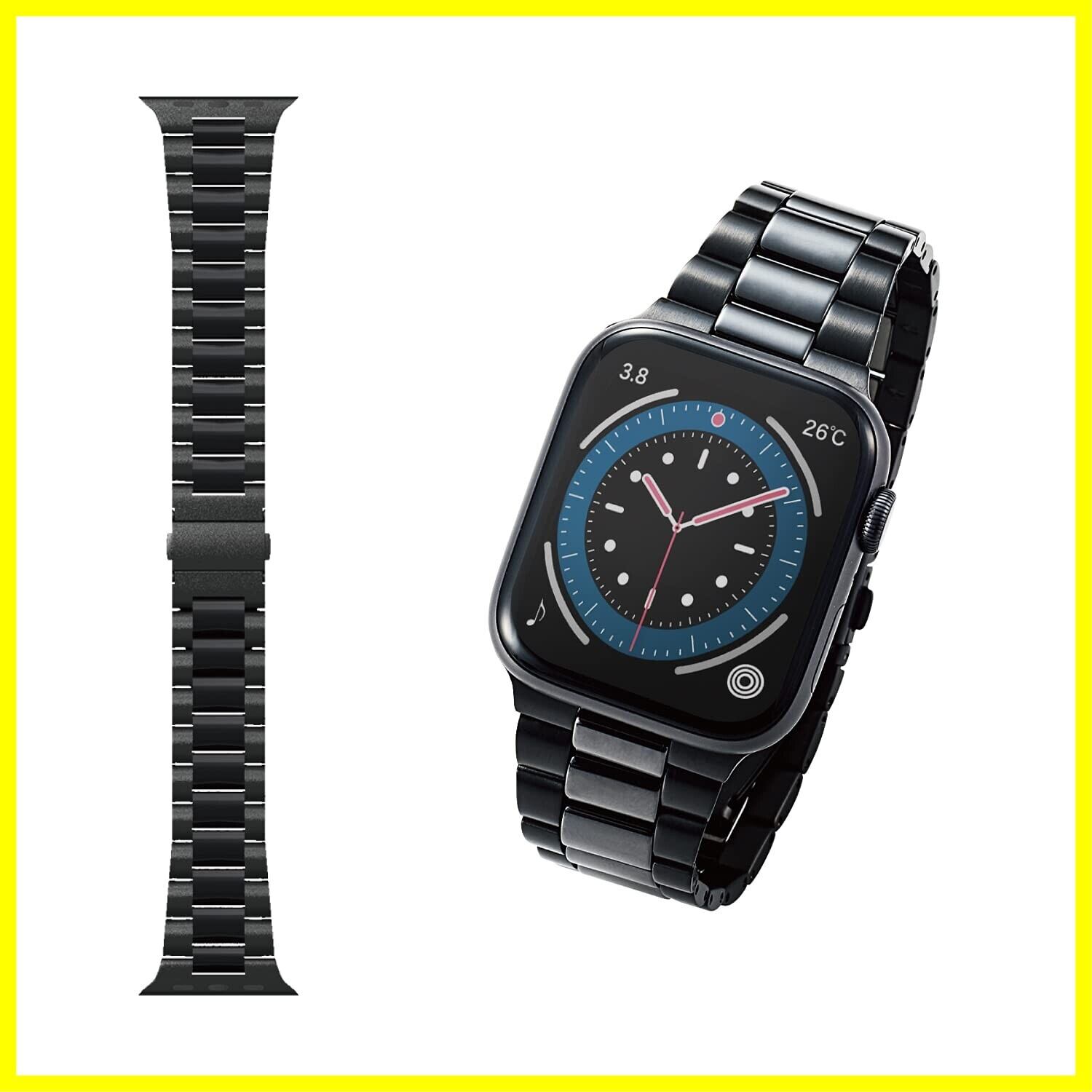 エレコム Apple Watch (アップルウォッチ) バンド 49mm 45mm 44mm 42mm [Apple Watch Ultra 3 2, 11 10 9 8 7 SE2 SE 6 5 4 3 2 1 対応] ステンレス セラミック 3連タイプ 長さ調整可 調整工具付き ブラック AW-44BDCE3BK