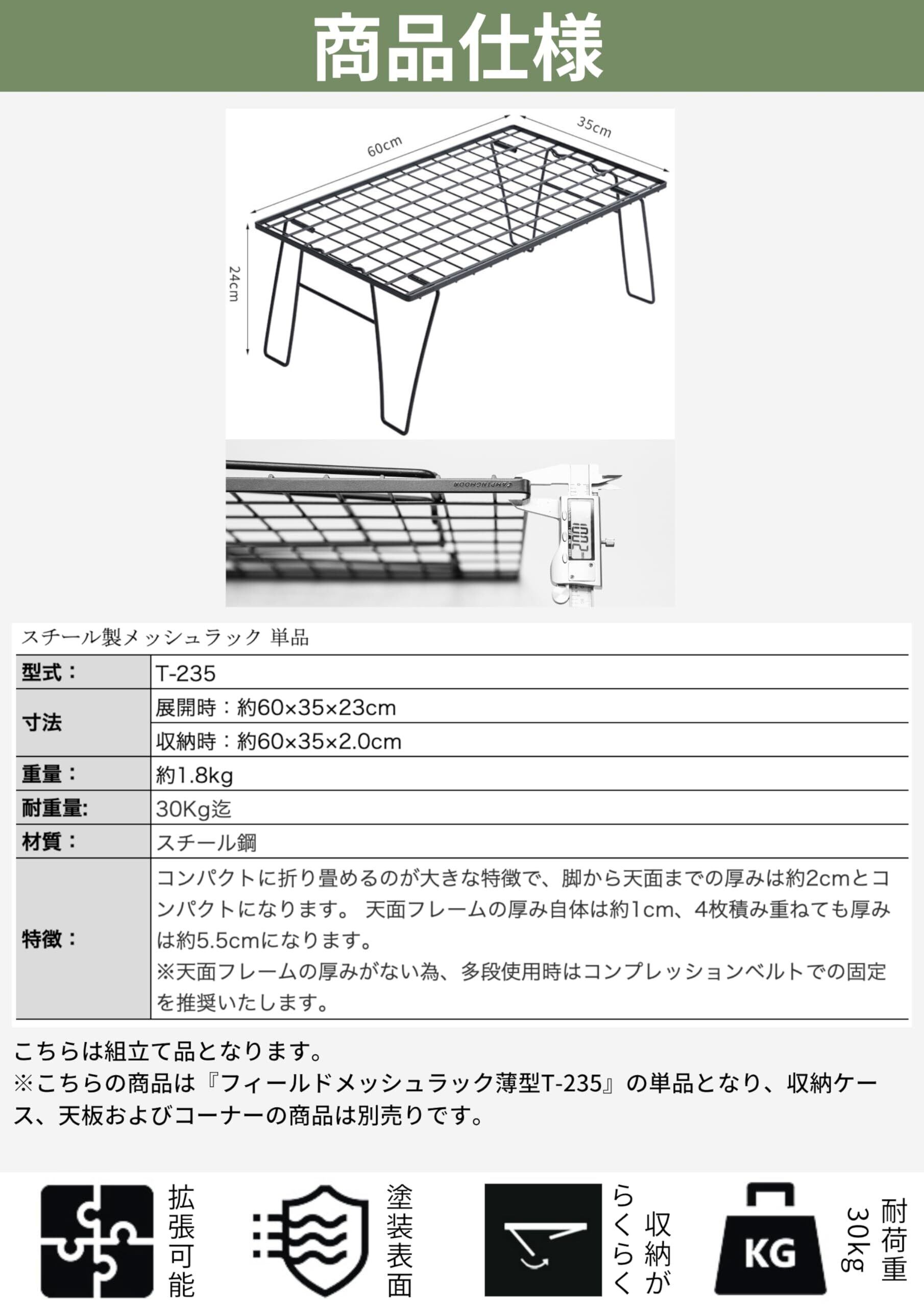 商品内容:フィールドメッシュラック単品(※収納バッグが付属されておりませんので、ご注意ください)