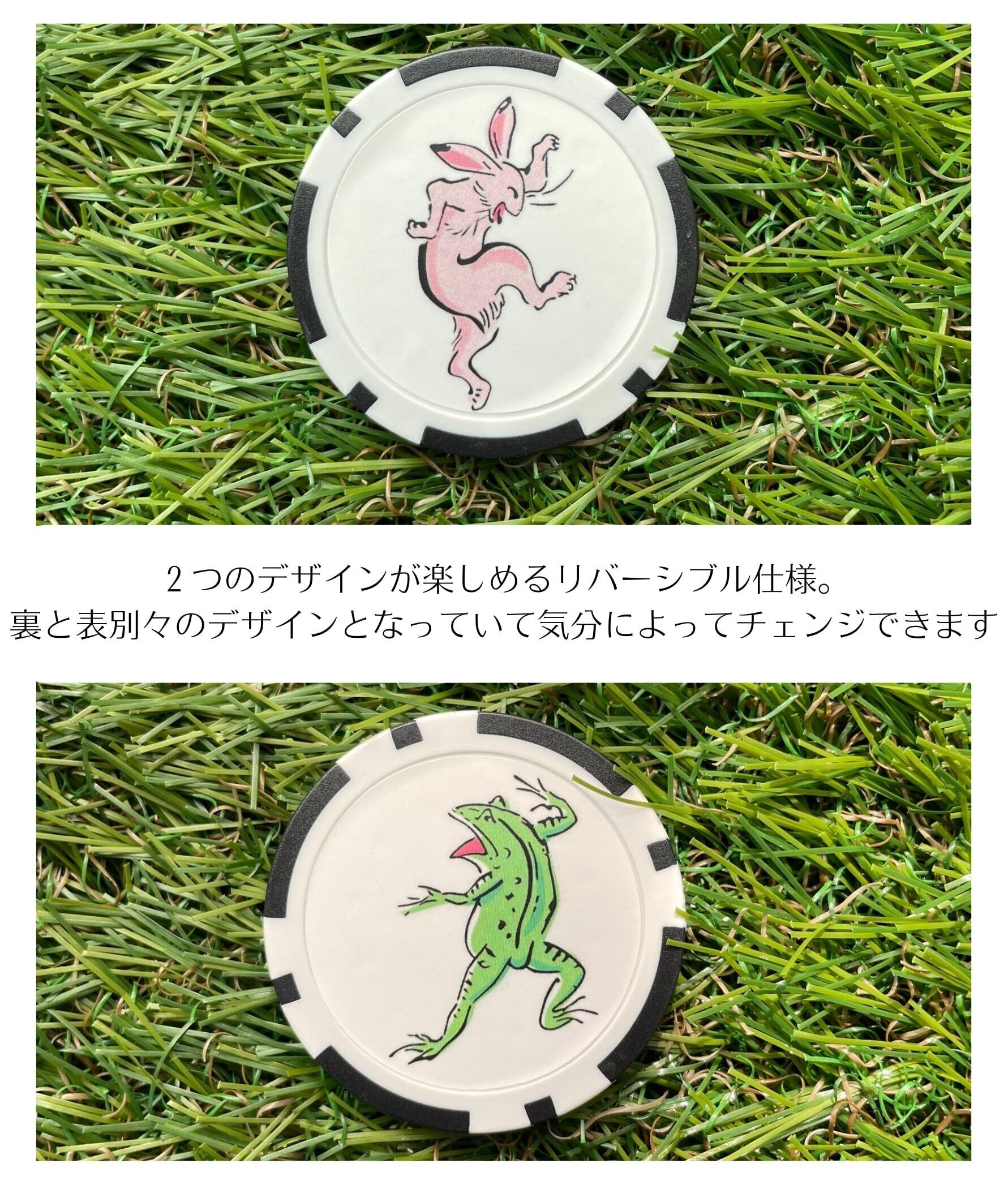 【伝統の鳥獣戯画デザイン】 日本最古の漫画とも呼ばれる「鳥獣戯画」の うさぎ&カエル をモチーフにした遊び心あふれるゴルフマーカー!