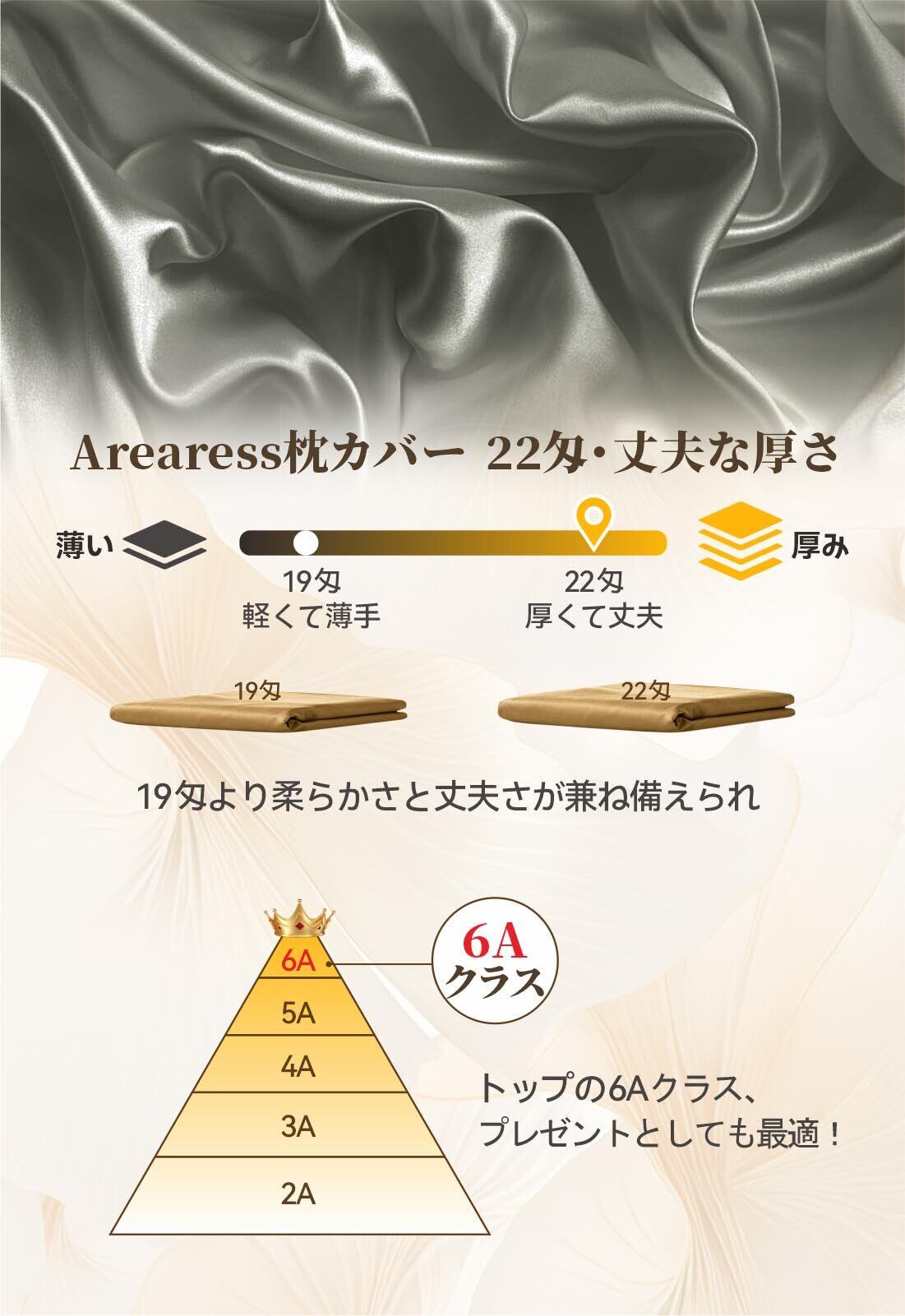 高品質枕カバー・プレゼント最適:Arearessのまくらカバーは髪にも肌にも優しく、美しい見た目と心地よい肌触り、年間通して快適にお使いいただけます。22匁の贅沢な生地で、そしてギフトポケット付き、自分用はもちろん、おプレゼントとしても最適の枕カバーでございます!