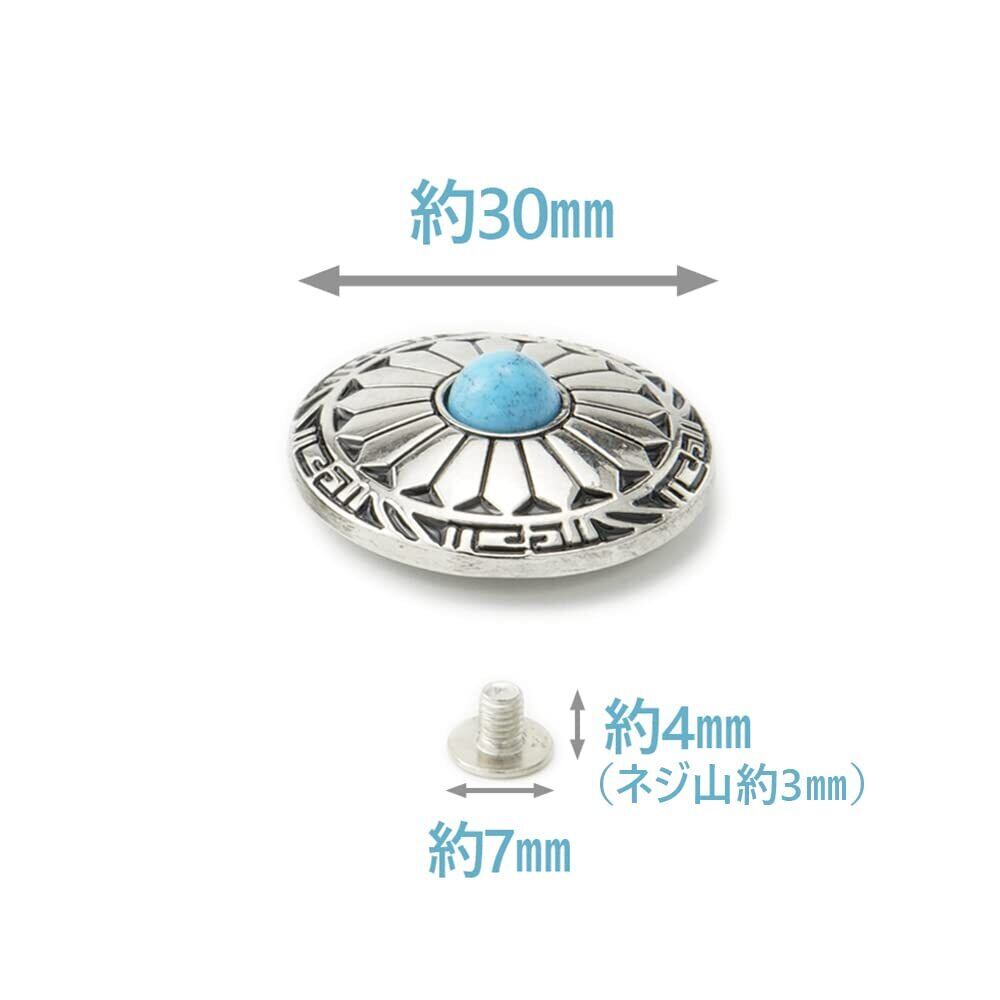 コンチョ ボタン ターコイズ 12個セット 30mm ネジ 付き シルバー レザー クラフト 財布 バッグ