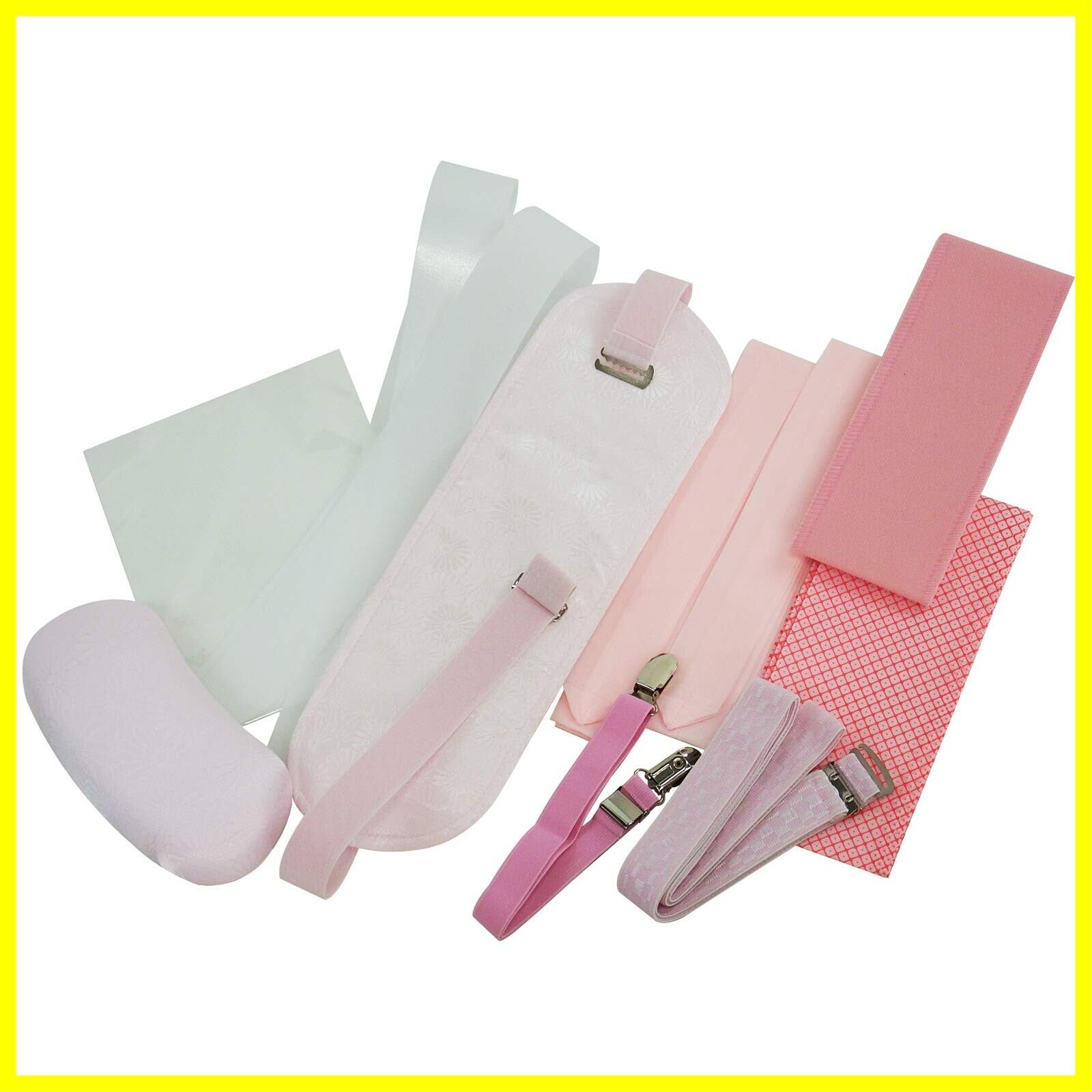 [きもの屋 さらさ] 和装小物 着付け小物11点セット ベルト付前板 伊達締め マジックベルト 着物ベルト ウエストベルト 帯枕 腰紐2本 衿芯2本 半衿 ホワイト/ピンク