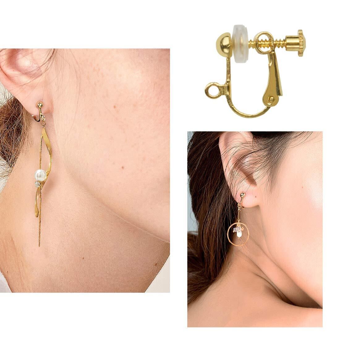 イヤリングパーツ MUNCVY DIY ネジバネ式 丸皿タイプ 10ペア20個 シリコンカバー付き ゴールド ネジ調整クリップ ノンホール ピアス ハンドメイド 基礎金具 材料 素材
