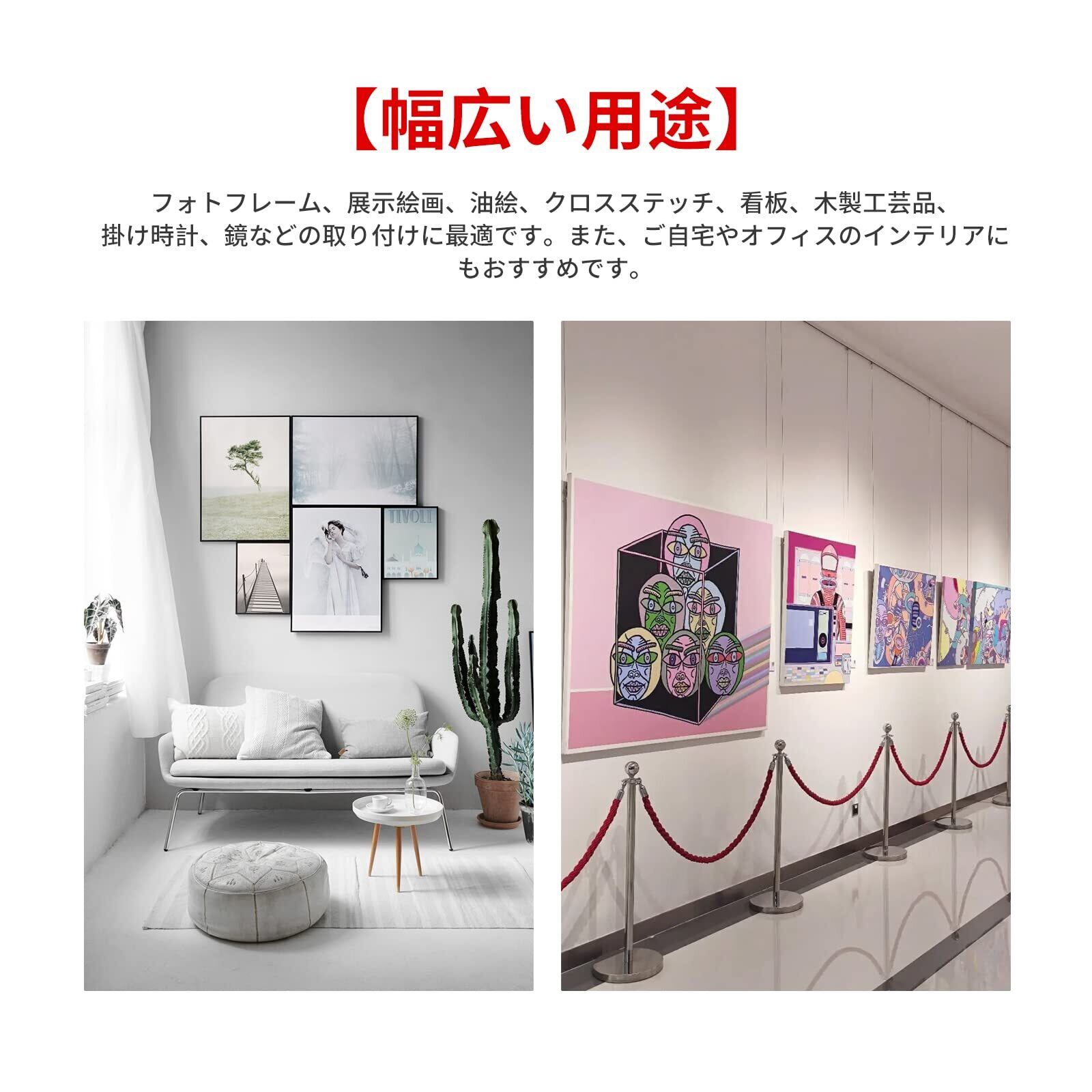 フォトフレーム、展示絵画、油絵、クロスステッチ、看板、木製工芸品、掛け時計、鏡などの取り付けに最適です。また、ご自宅やオフィスのインテリアにもおすすめです。