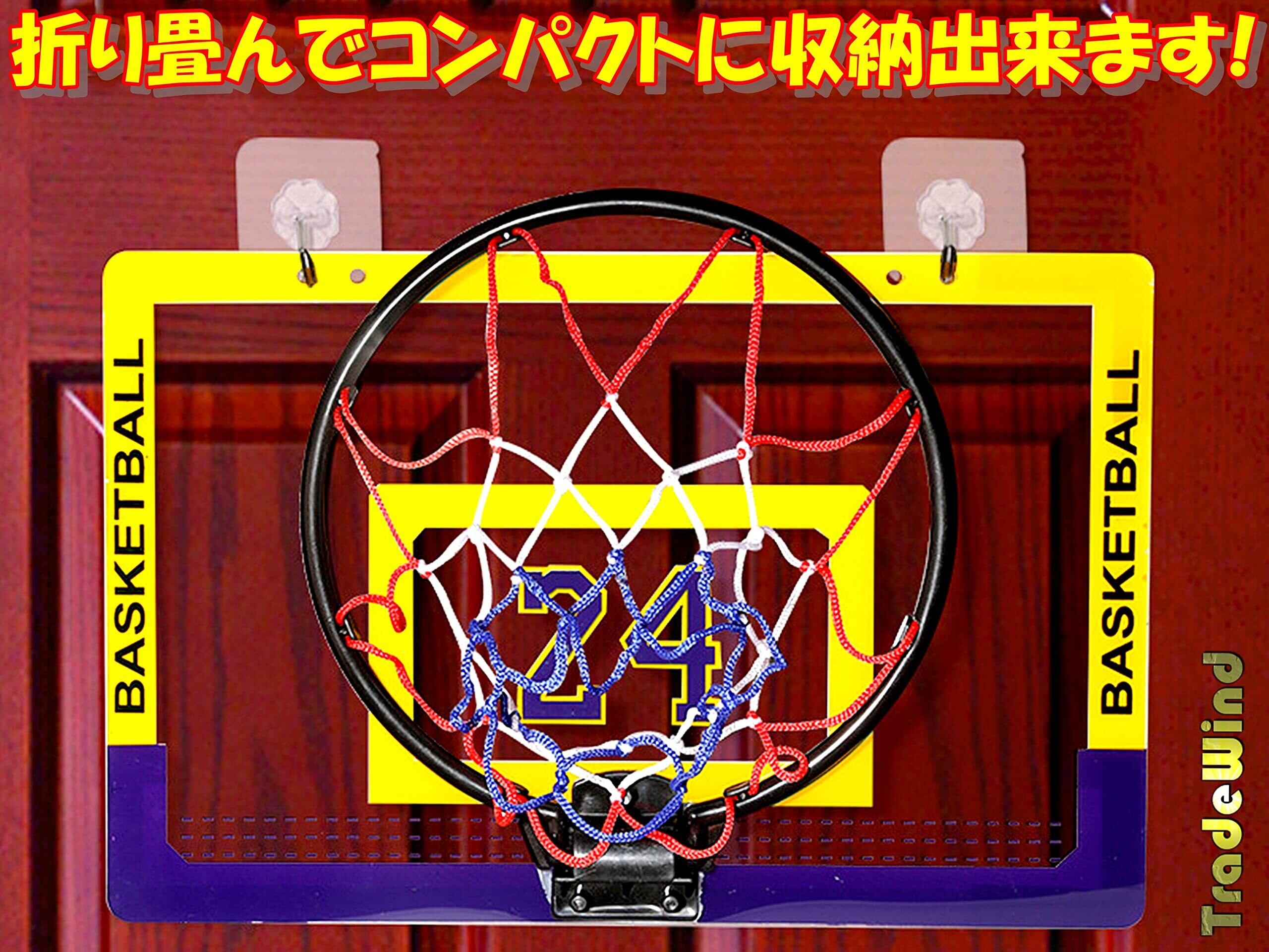 【セット内容】バスケットゴール、ゴールネット、ボール、エアポンプ、シールタイプフック×4、傷騒音防止クッション×4【サイズ】ゴール板:40×26cm ゴールリング:24cm ボール:15-16cm