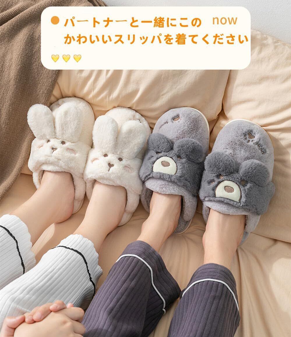 [Drawyume] スリッパ あったかい 室内履きレディース メンズ モコモコ かわいい スリッパ ウサギスリッパ 保温 防寒 来客用ルームシューズ バニースリッパ 滑り止め 洗濯機 洗える 冬部屋用 暖かい スリッパ 軽量 足音 もこもこ