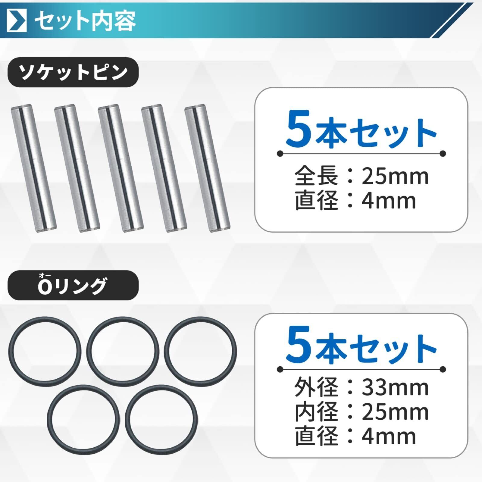 インパクトレンチソケット固定用ピン&Oリング5セットの商品です。 錆びに強く高耐久のステンレス製ピン5本、耐油性のあるニトリルゴム製Oリング5本のセットです。