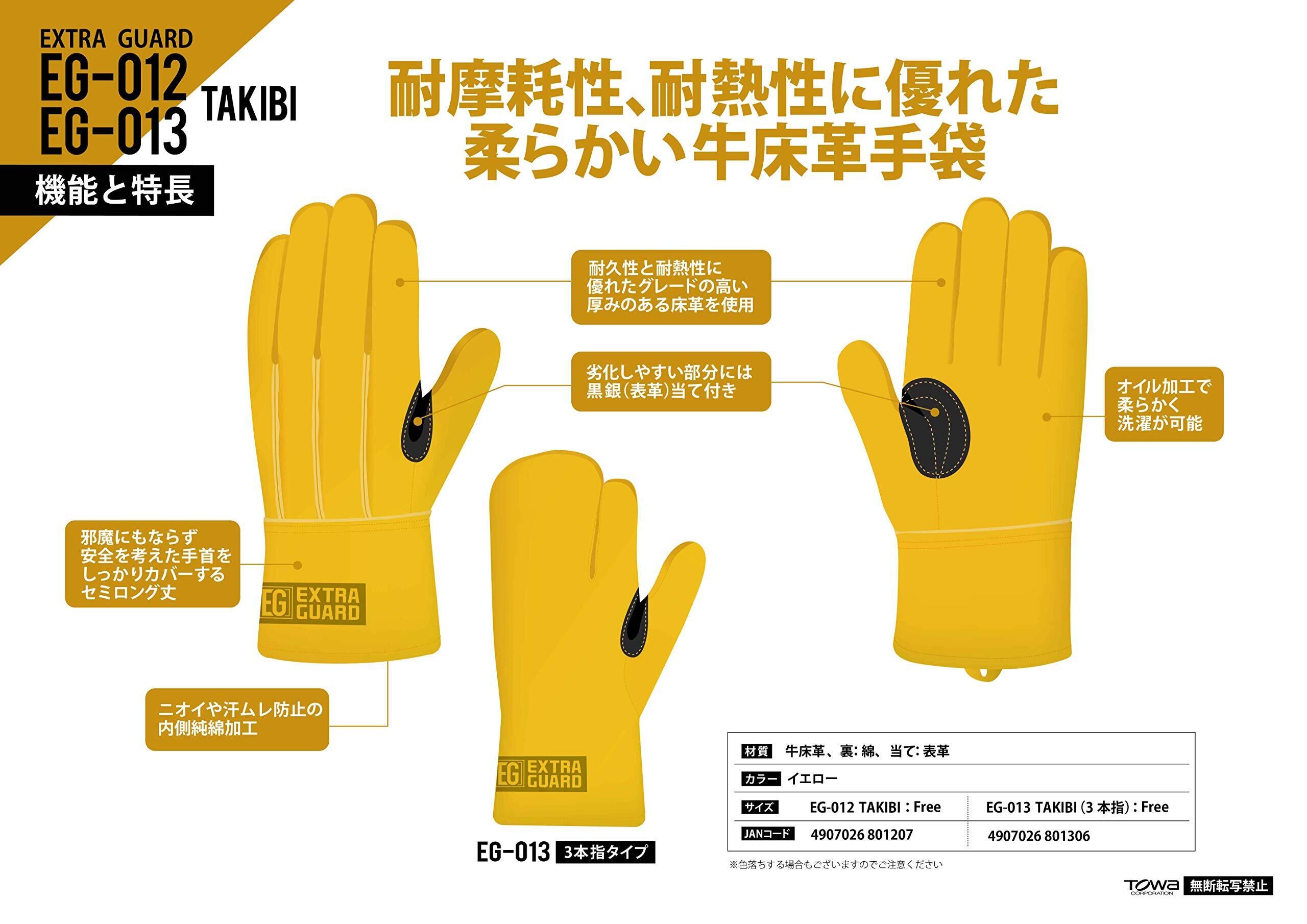 [東和コーポレーション] 牛床革手袋 EXTRAGUARD TAKIBI 5本指 EG-012