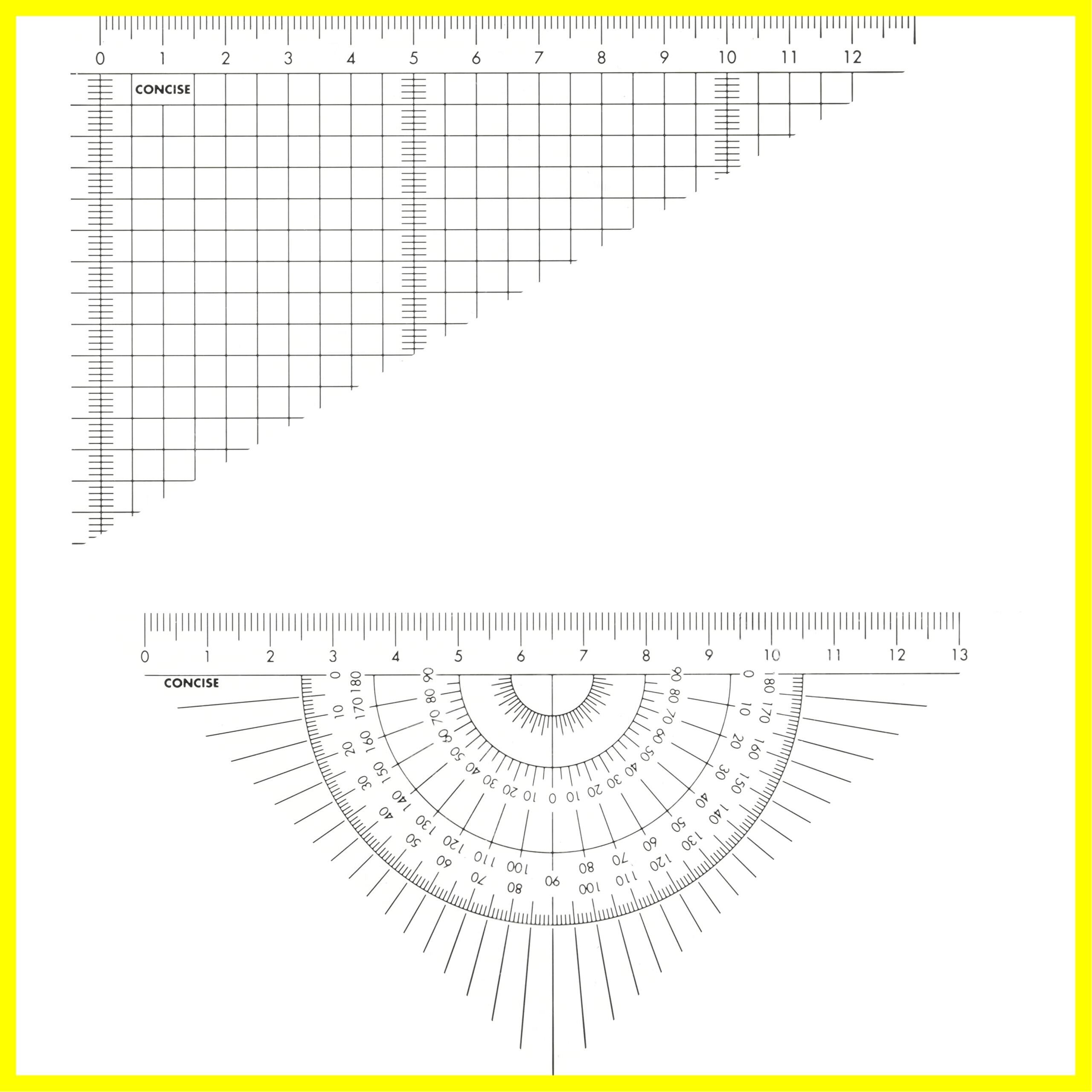 ◆45度三角定規には、180度までの分度器の目盛が入っているため通常の三角定規では測れない細かい角度まで測ることができます。(定規目盛は13cm) ◆60度三角定規には5mmの方眼目盛が入っているので、平行線・垂直線が取りやすく大変便利。(定規目盛は13cm)