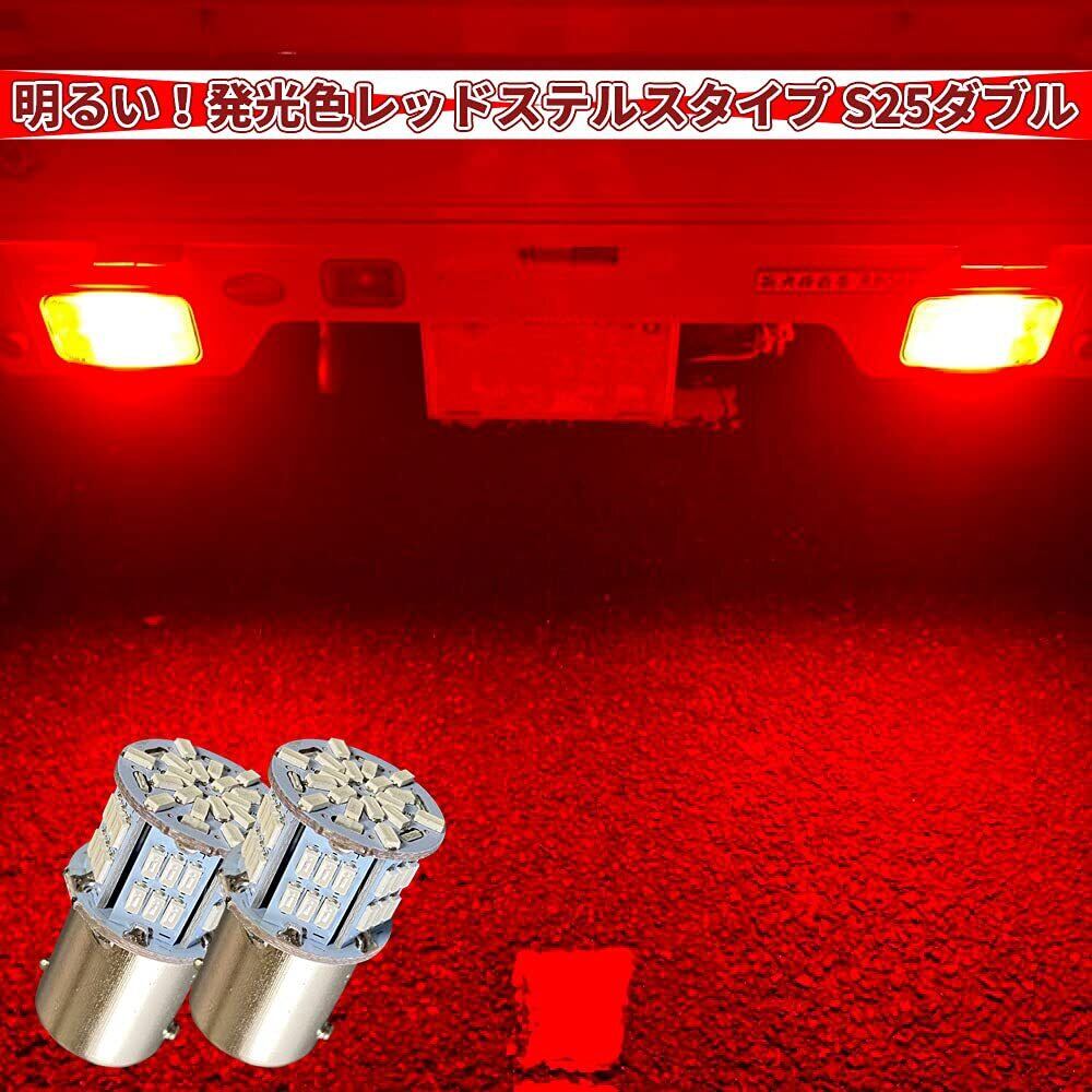 54SMD、G18(S25/BAY15D)ダブル超高輝度LEDバルブ、光色レッド2個セットです。